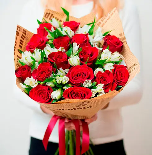 Сочетание страстных красных роз и белых альстромерий притягивает и говорит всем своим видом о ваших чувствах по-настоящему. О том, что Вы думаете об этом человеке, скучаете, хотите поскорее увидеть и обнять его. Этот букет говорит о Вашей любви или искренней симпатии. Не упустите возможность оформить заказ с бесплатной доставкой, мы с радостью его выполним и в городе на одного счастливого человека станет больше!