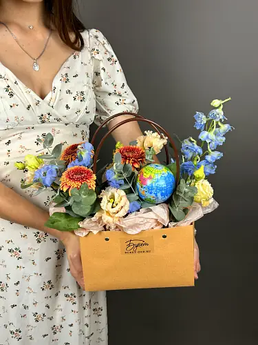 Композиция с герберой мини и глобусом