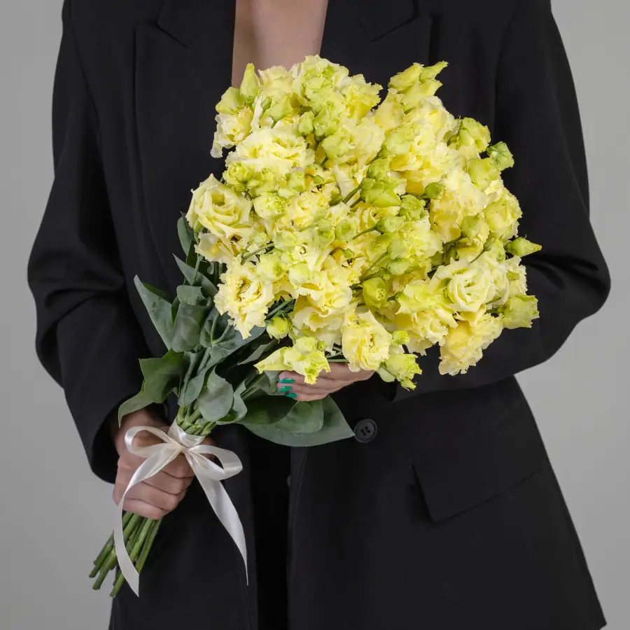 На фото - 15 Кремовых Лизиантусов под ленту . В составе данной композиции: Эустома - 1 шт, Дизайнерская упаковка, Лента атласная , . На сайте sbuket-nn.ru Вы найдете большой выбор недорогих букетов, цветочных композиций для любого повода. У нас можно заказать 15 Кремовых Лизиантусов под ленту за 6800 руб.