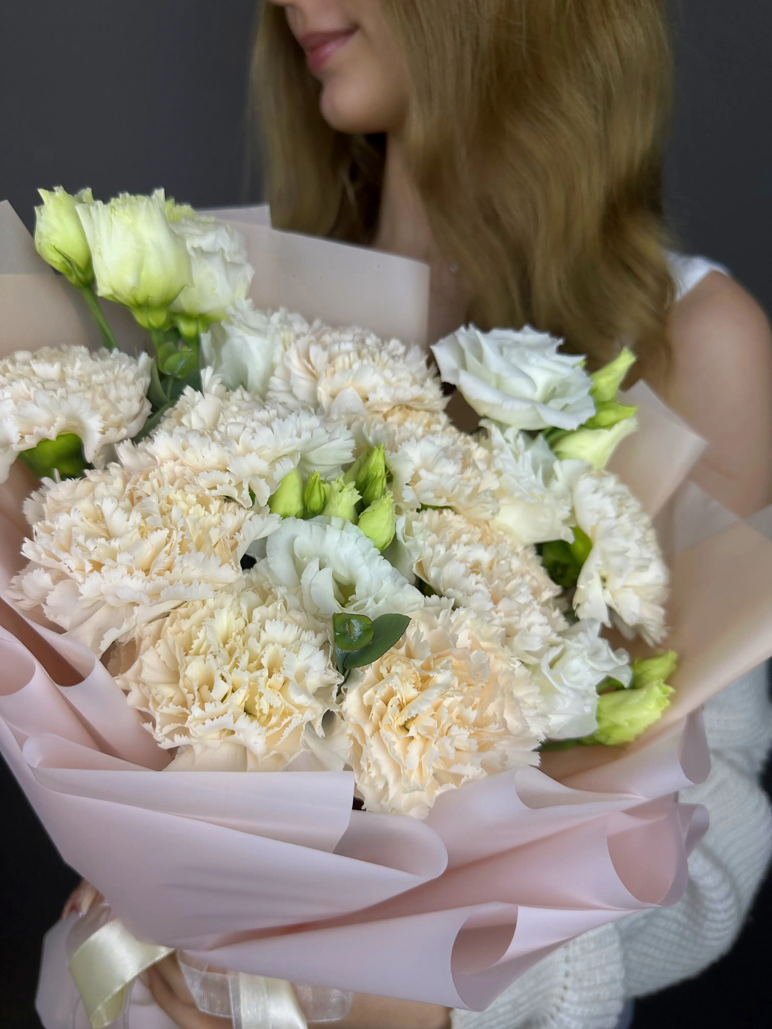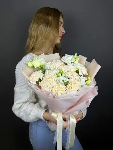Соберем в день доставки, только из свежих цветов и затем с улыбкой вручим получателю.