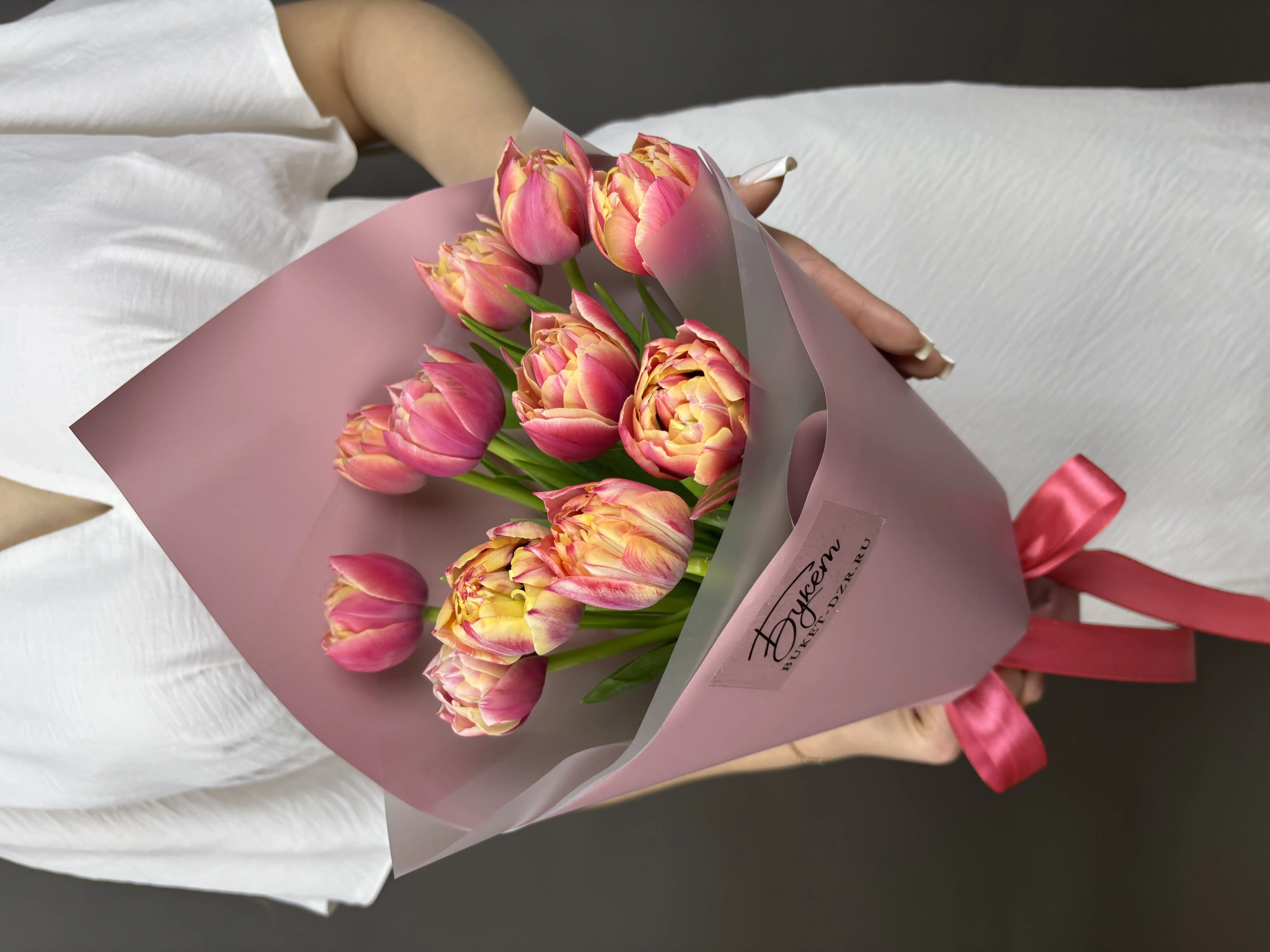 Соберем в день доставки, только из свежих цветов и затем с улыбкой вручим получателю.