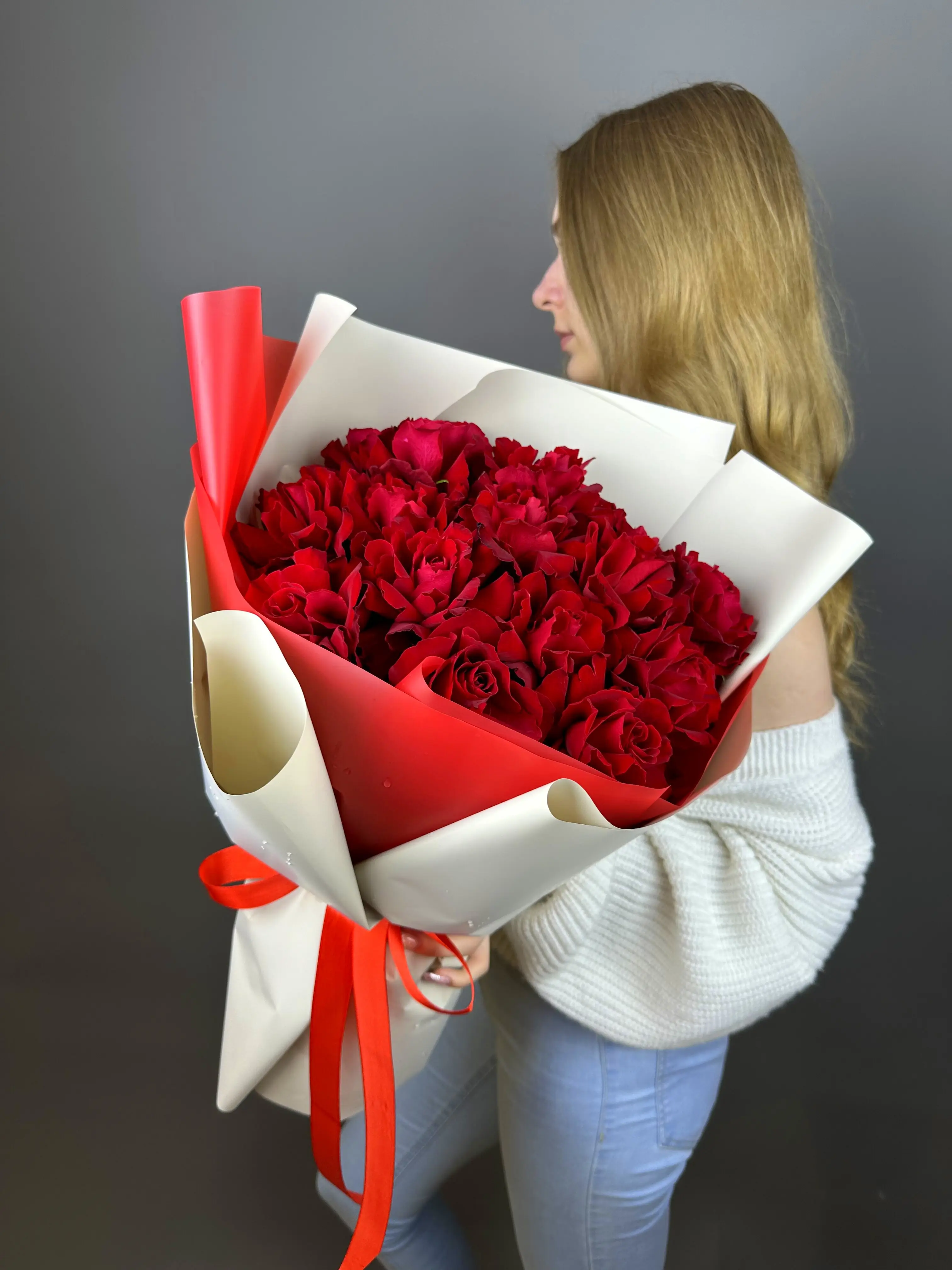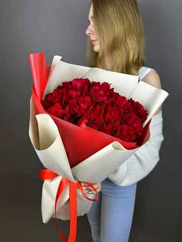 Воспользуйтесь нашей удобной услугой доставки цветов прямо к дверям получателя. Это отличный способ выразить свои чувства, даже если вы находитесь на расстоянии. Подарите кому-то возможность насладиться красотой и ароматом нашего великолепного букета из красных роз.