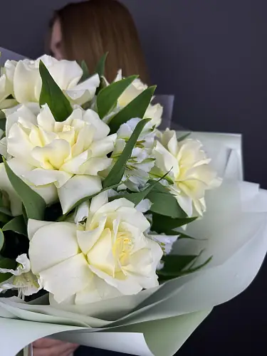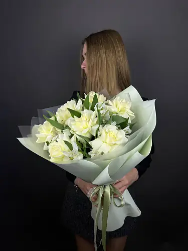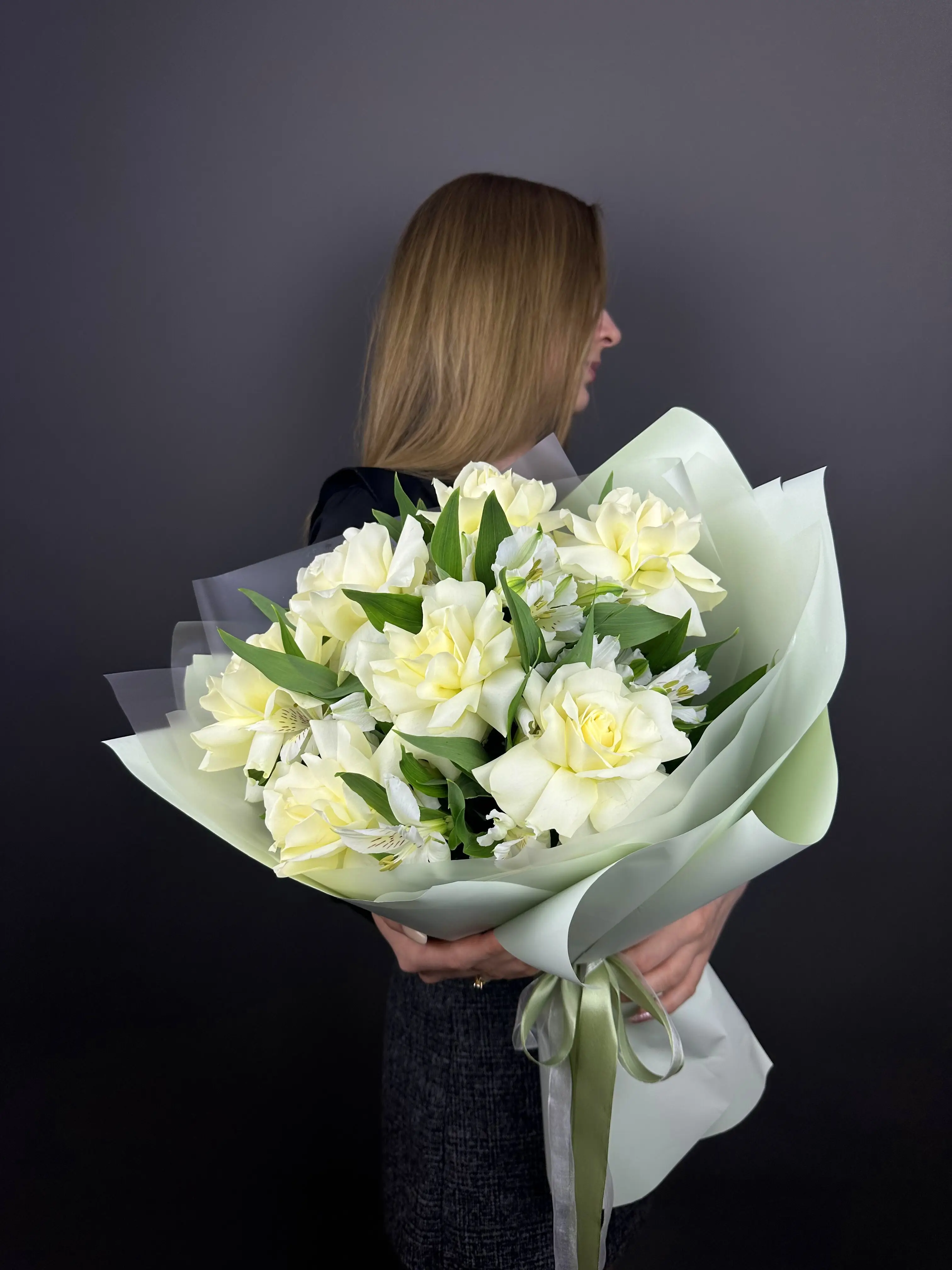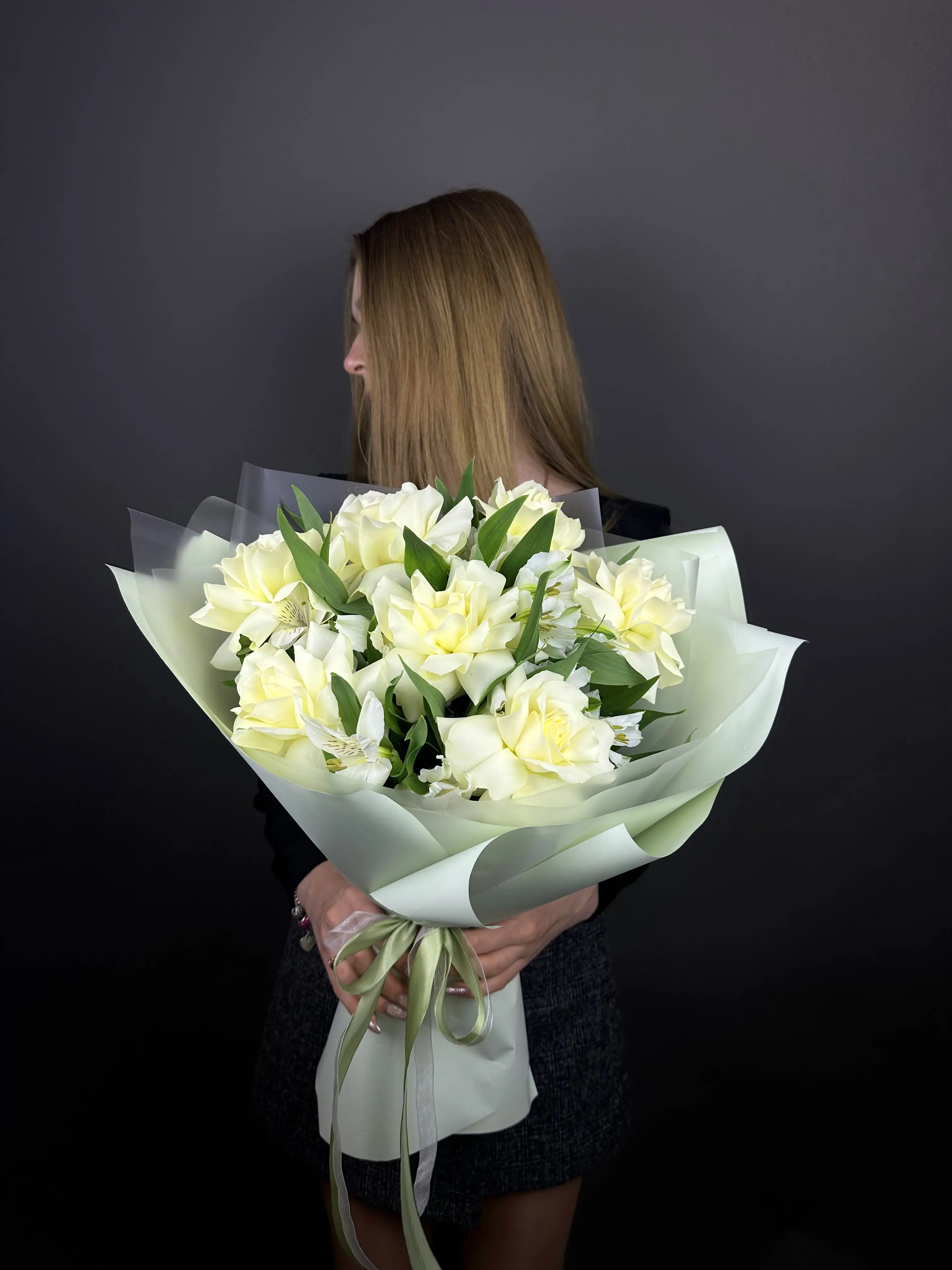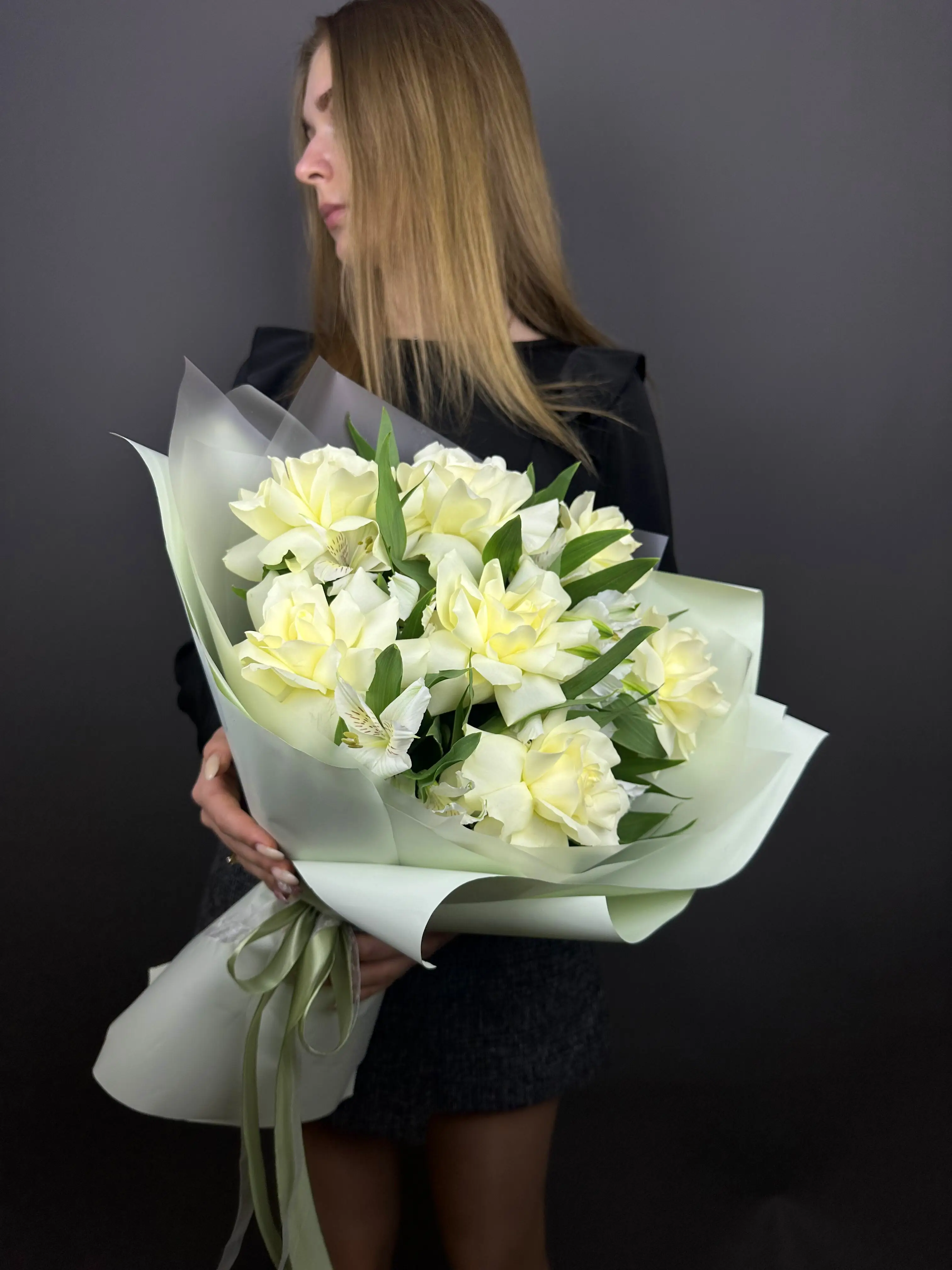 Представляем вашему вниманию изысканный букет из роз и альстромерии — идеальное решение для тех, кто хочет порадовать себя или своих близких красивым и свежим цветочным подарком.