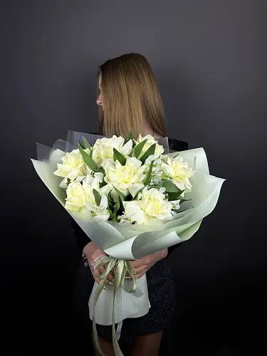Соберем в день доставки, только из свежих цветов и затем с улыбкой вручим получателю.