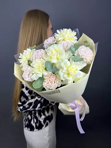 Создание букета доверено профессионалам-флористам, что гарантирует использование только свежих цветов, прекрасно сохранивших форму, цвет и аромат. Каждая деталь проработана с особой тщательностью, чтобы букет выглядел идеально и радовал глаз получателя на протяжении длительного времени.
