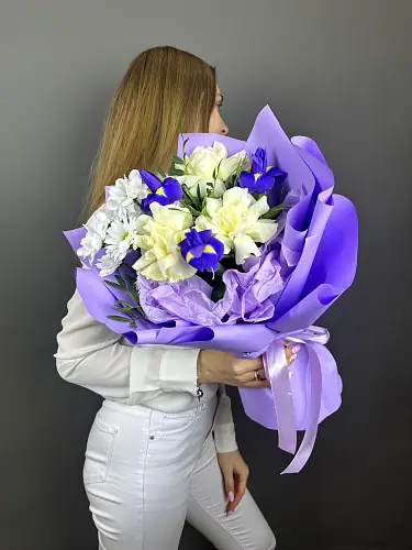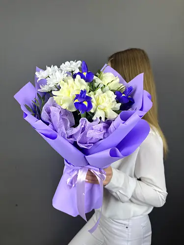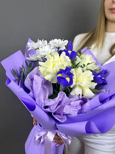 Подарите гармонию страсти и мудрости. Этот выразительный букет, в котором величественные ирисы дополняются роскошными розами, создает идеальный баланс между глубиной чувств и изысканной элегантностью. Композиция, наполненная контрастом текстур и оттенков, станет воплощением сильных эмоций и искренних намерений.