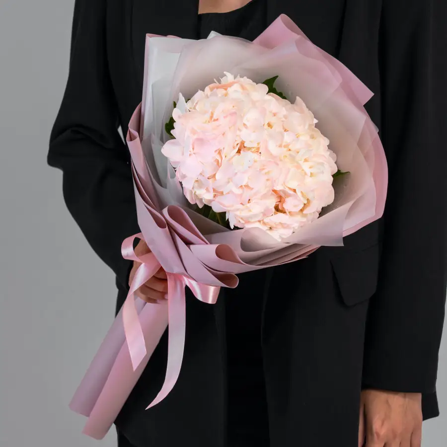 Представляем вашему вниманию очаровательную композицию из нежной гортензии в элегантной упаковке. Эти изящные цветы – символ красоты и спокойствия, они украсят любое помещение, внеся в него атмосферу свежести и нежности. Гортензия известна своими пышными соцветиями и разнообразием оттенков, что позволяет создавать яркие и стильные композиции.