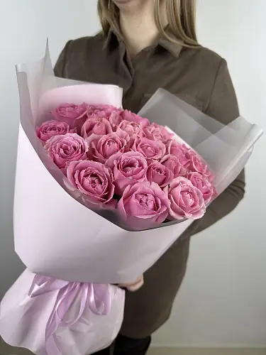 Каждая роза в этом букете тщательно отобрана и оформлена профессионалами нашего магазина, чтобы подчеркнуть их естественную красоту и грациозность. Букет из 25 розовых роз не только восхитит своим внешним видом, но и подарит непревзойденный аромат, который окутает вас теплыми воспоминаниями.