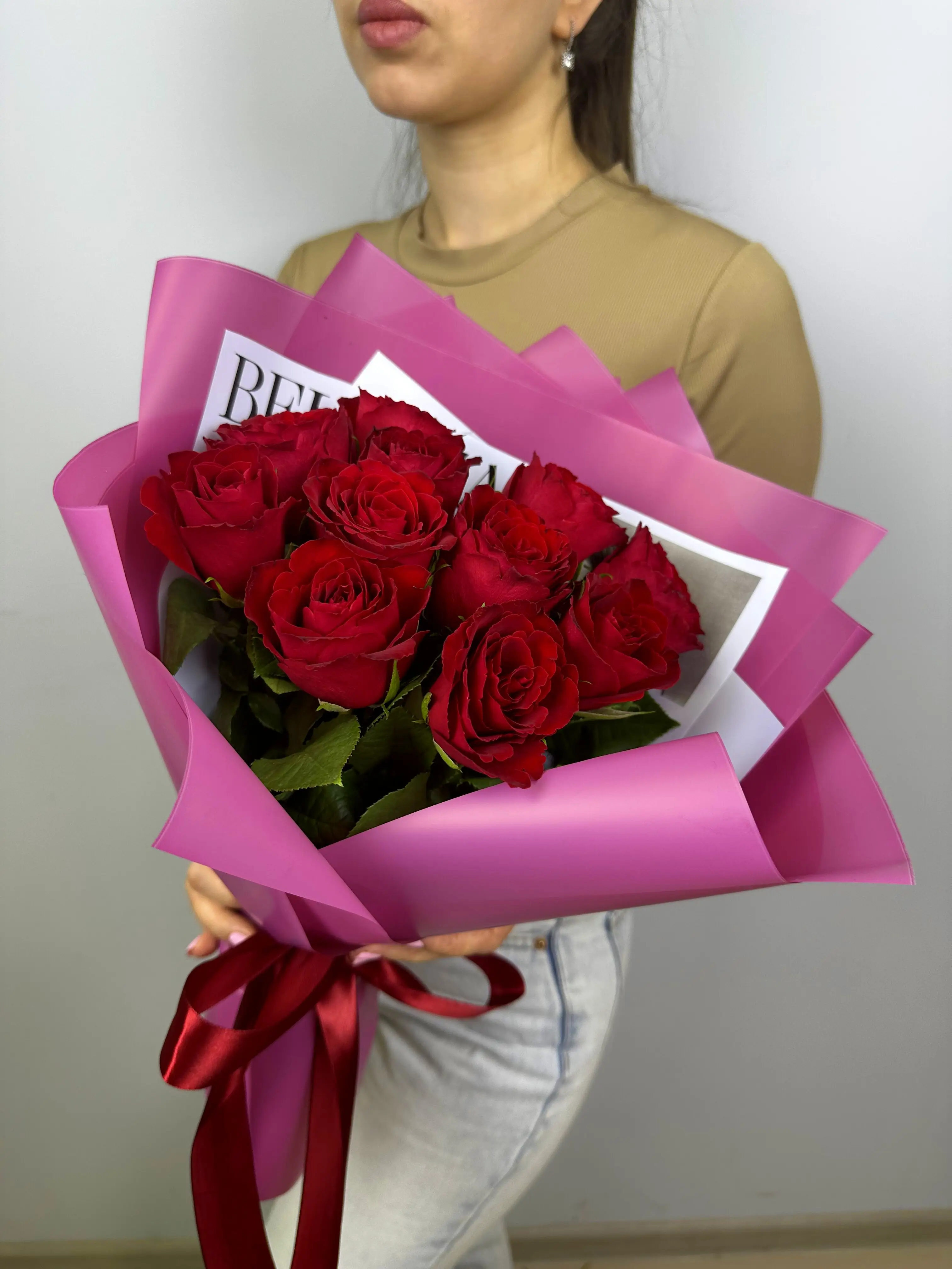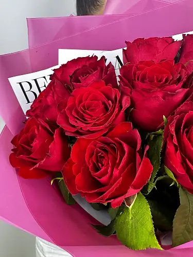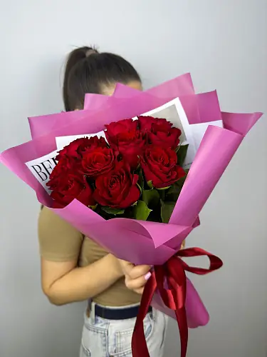 11 Красных роз в дизайнерской упаковке