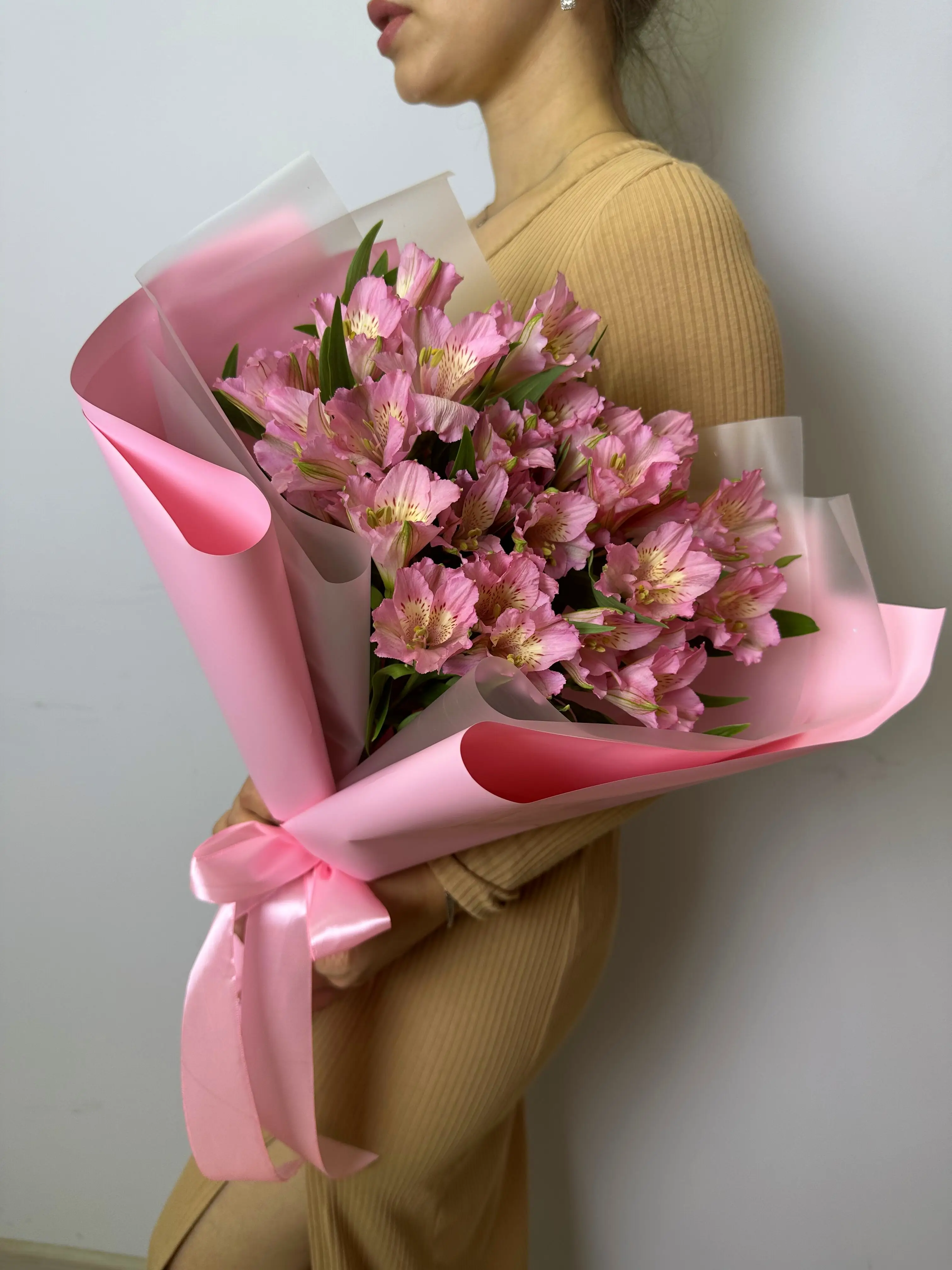 Представляем вашему вниманию букет из семи розовых альстромерий. Альстромерии – это универсальные цветы, символизирующие дружбу и симпатию. Этот букет станет прекрасным подарком на любой праздник или просто знаком внимания.