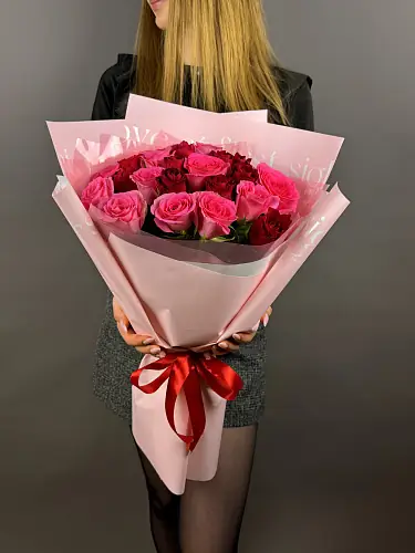 Уникальный и элегантный букет из 21 розы в стильной упаковке станет идеальным подарком для любого особого случая. Этот букет — воплощение красоты и изысканности, которое подарит массу положительных эмоций. Каждая роза в букете тщательно отобранных сортов отличается свежестью и великолепным внешним видом, что позволяет создавать по-настоящему роскошные композиции.