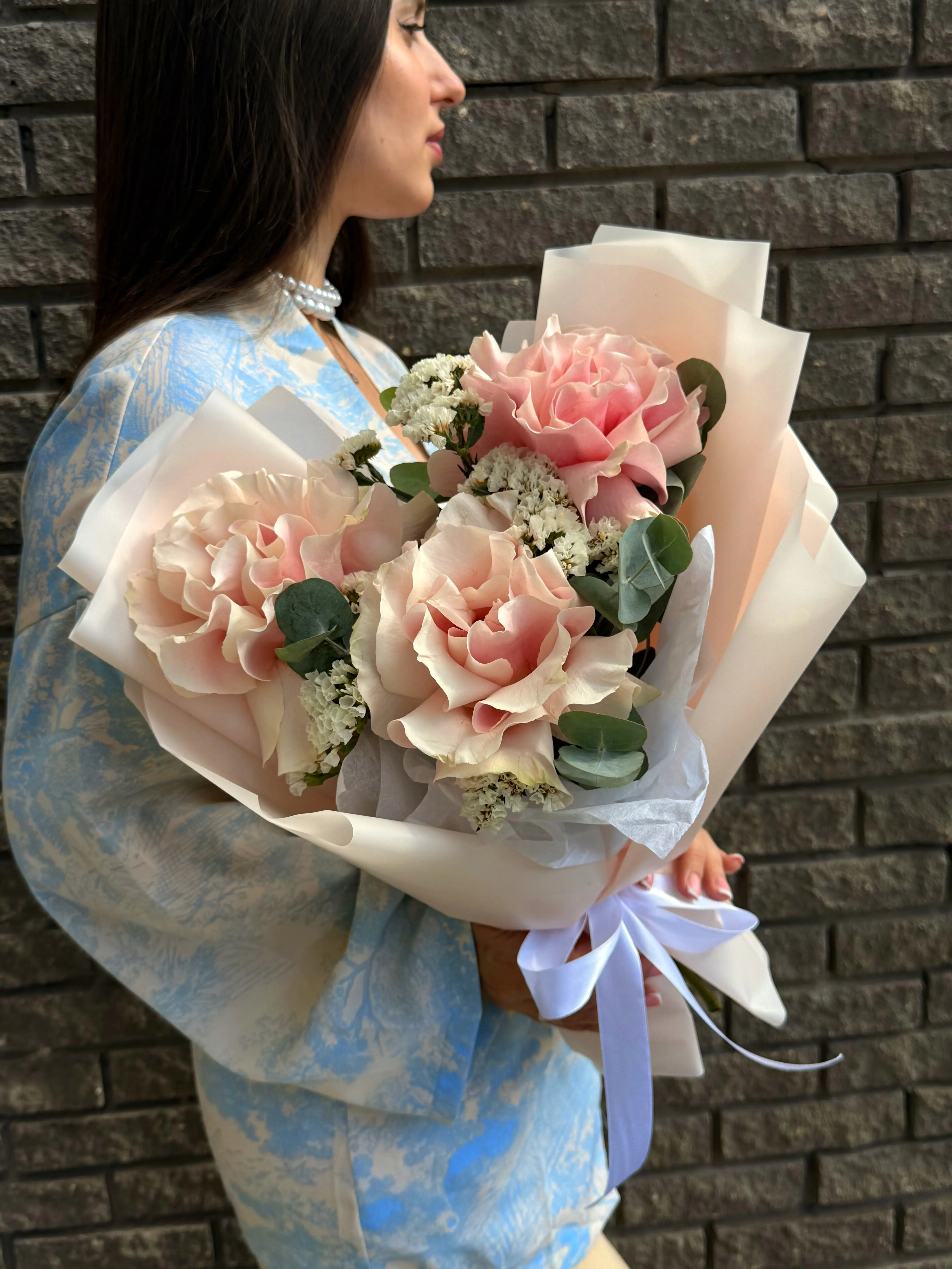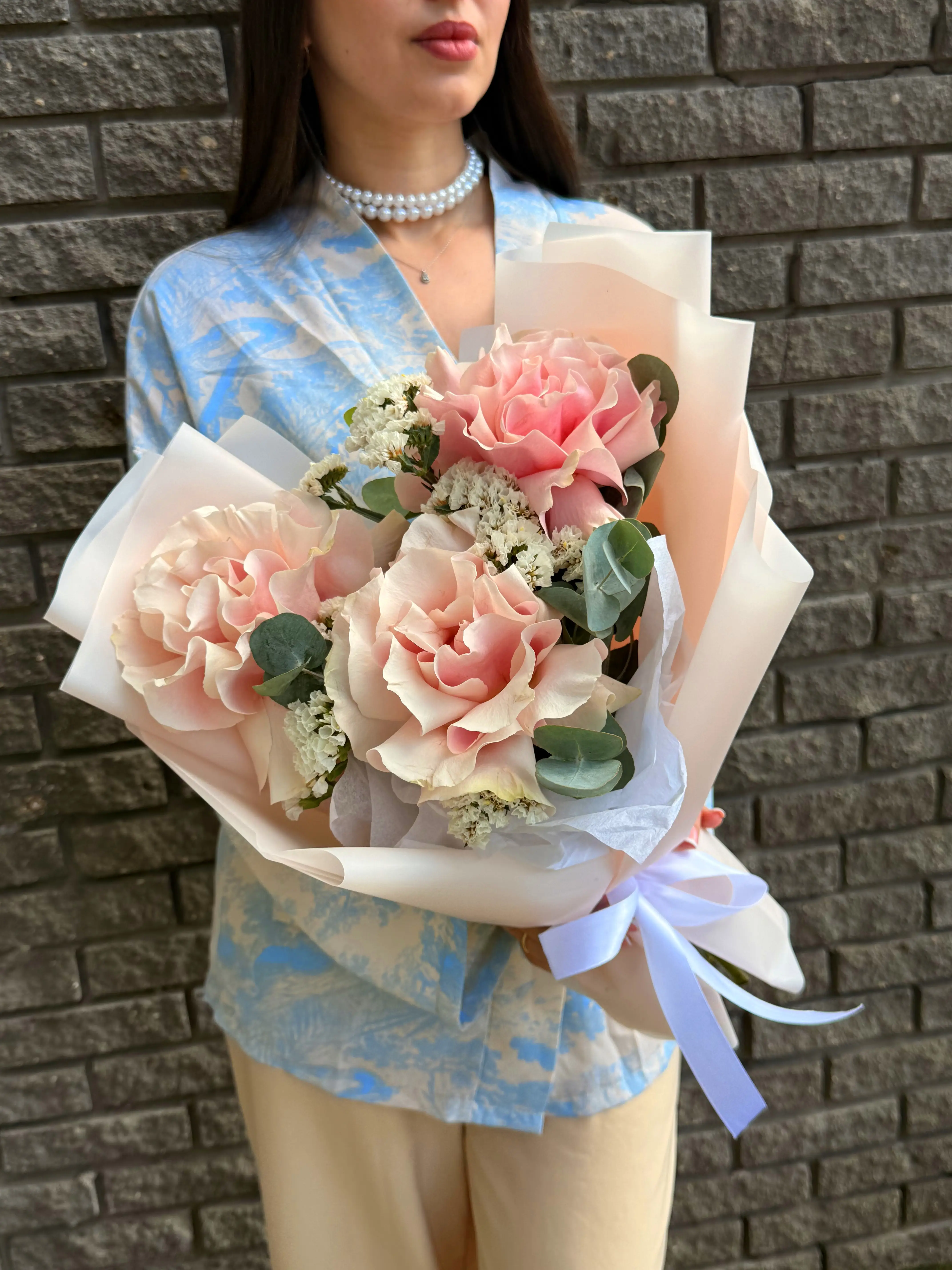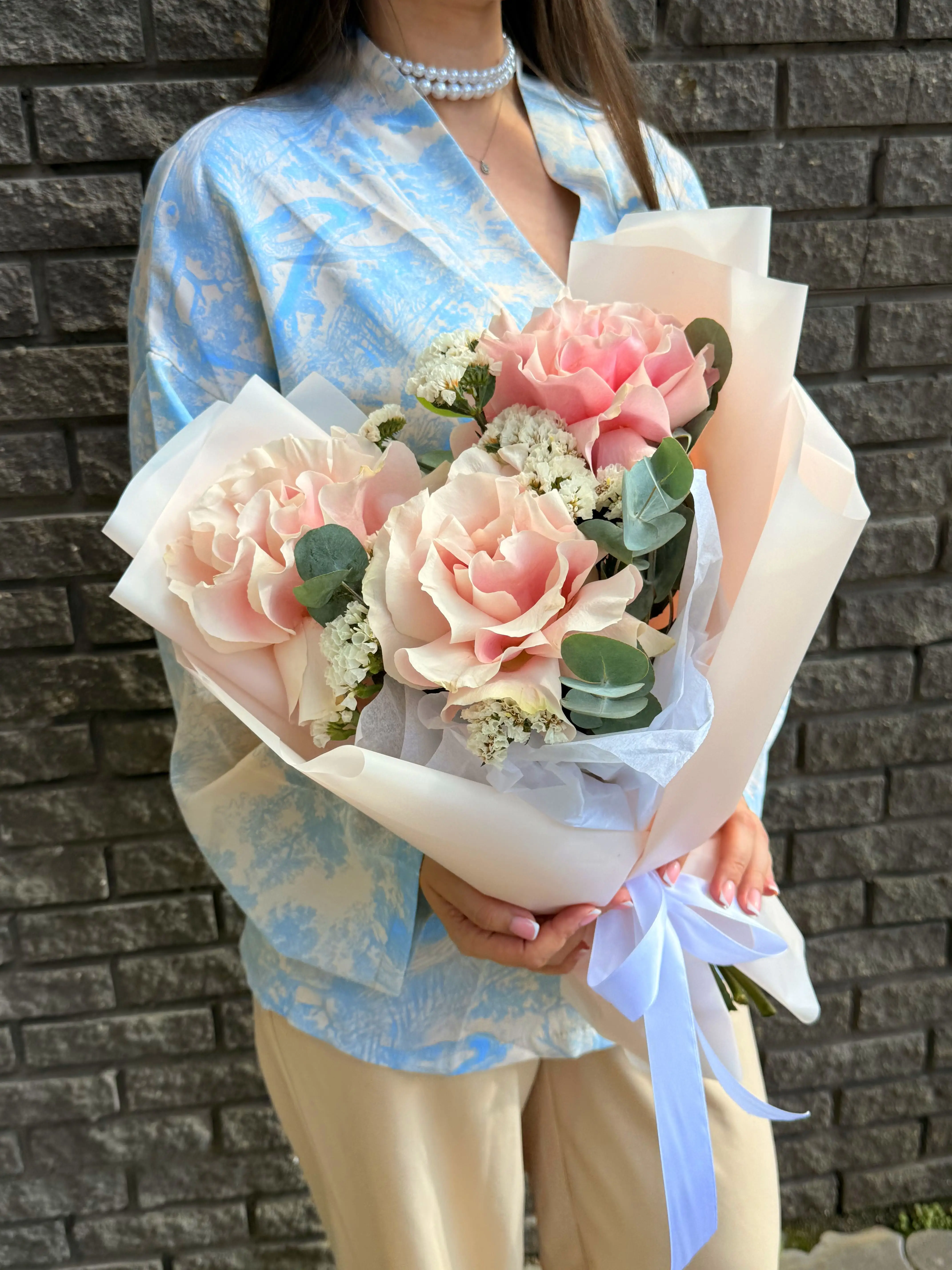 Царственные розы символизируют любовь и восхищение, привнося в букет классическую изысканность и утончённость. Воздушная статица, известная своей невероятной стойкостью и деликатной текстурой, добавляет композиции объём и современное звучание, символизируя долговечность и память. Мы carefully подбирали каждый цветок, чтобы вы могли подарить не просто букет, а искреннюю эмоцию.