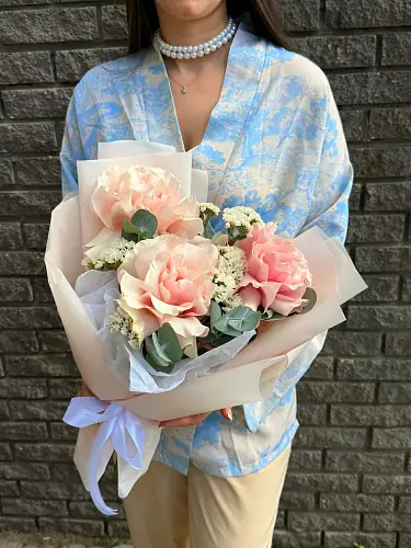Представьте себе идеальное сочетание нежности и стойкости. Этот элегантный букет, в котором роскошные розы гармонично дополнены изящной статицей, станет воплощением ваших самых тёплых чувств. Композиция в стильной упаковке — это не просто подарок, а цельное произведение искусства, призванное дарить эмоции и наполнять пространство особой атмосферой.
