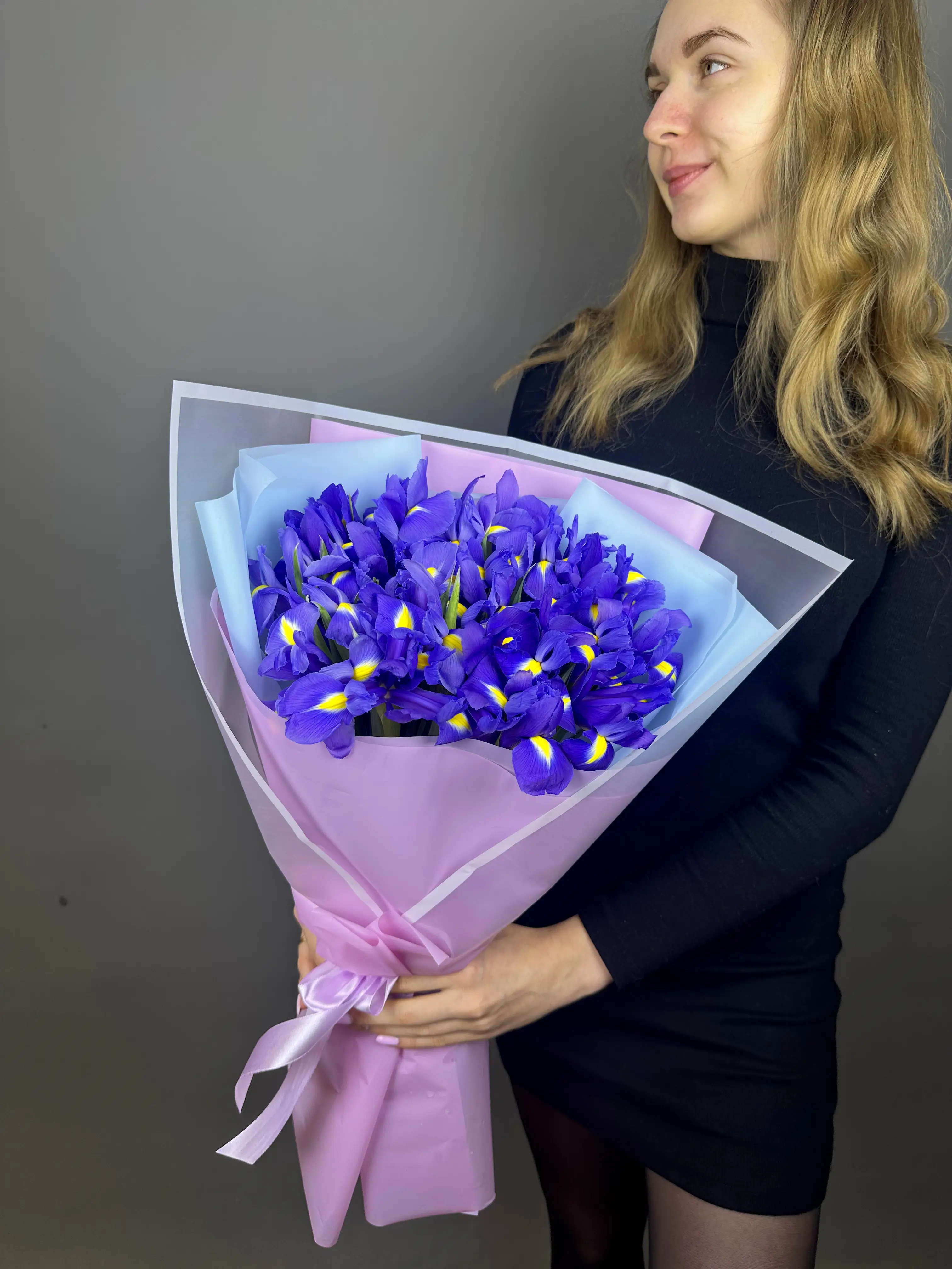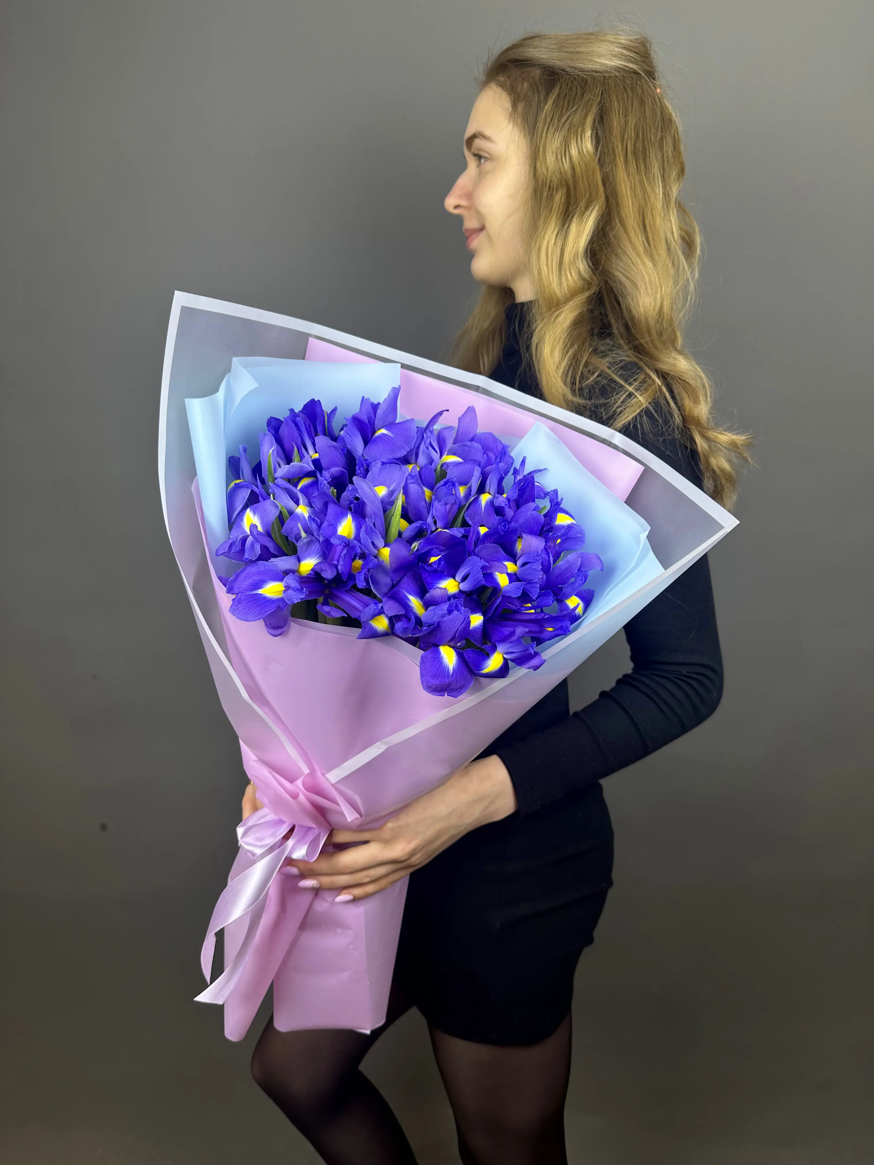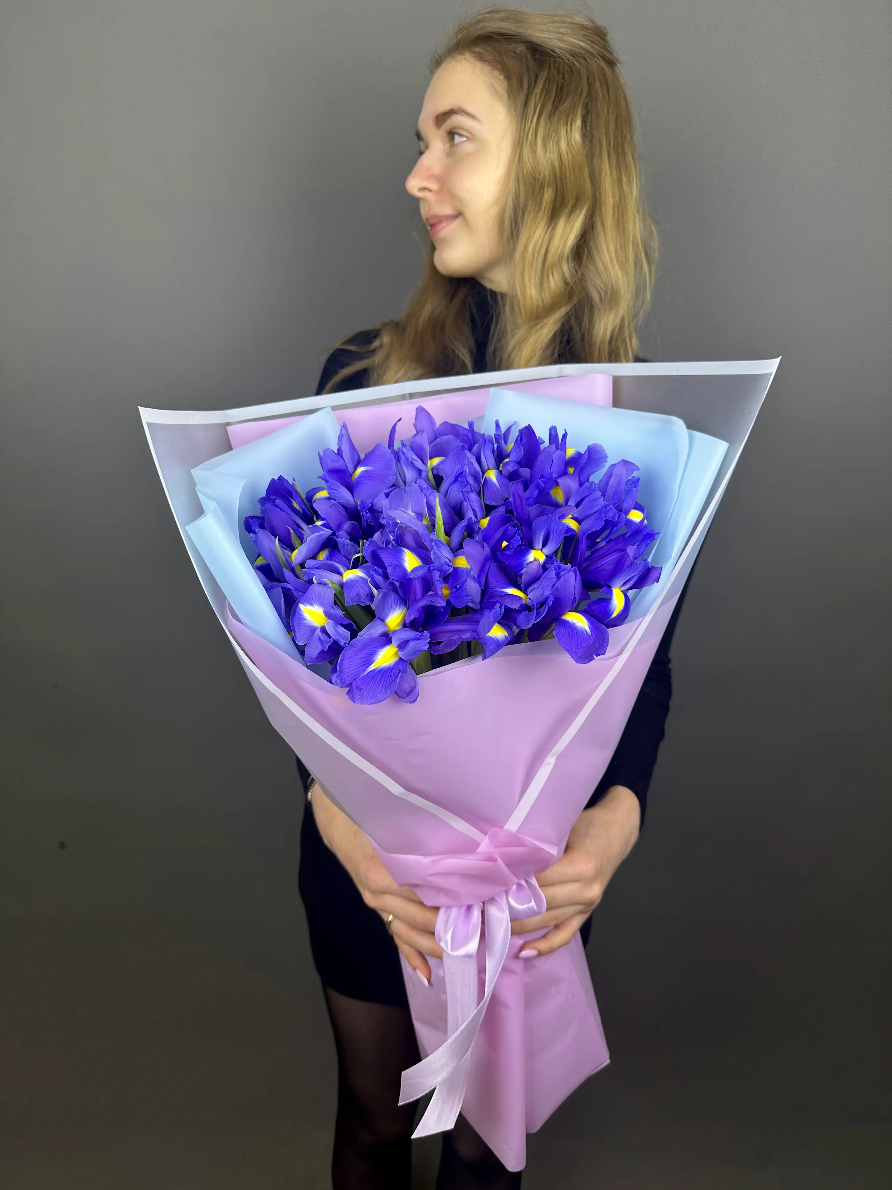 Букет из ирисов в дизайнерской упаковке
