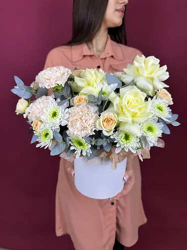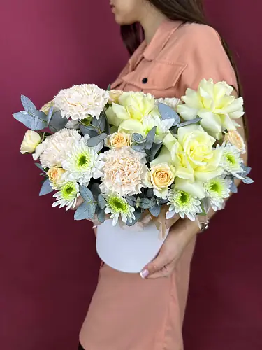 Будучи универсальным подарком, нежная композиция с розами и хризантемой подойдет для множества ситуаций: как для теплого семейного вечера, так и для официального делового поздравления. Блестящий подарок для женщин любого возраста, приятный сюрприз любимому человеку или признание в чувствах — нежная цветочная композиция оставит неизгладимое впечатление и согреет сердце дорогого человека.
