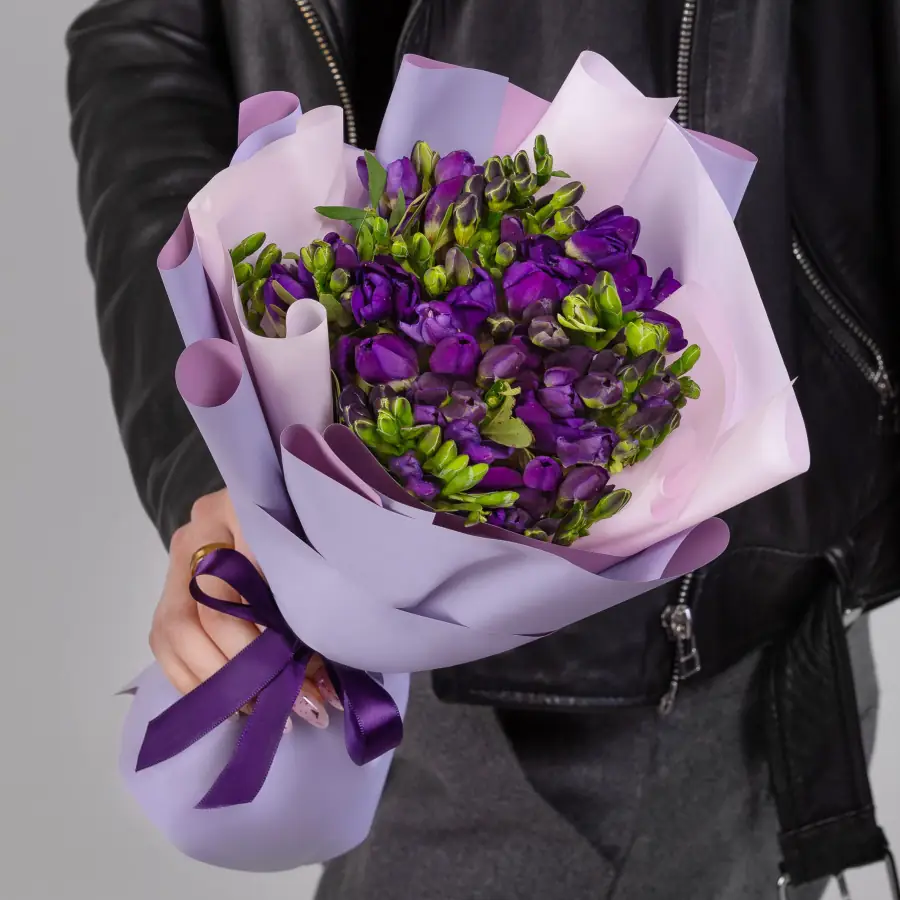 15 Фиолетовых Фрезий в упаковке — купить по цене от 4400 руб. с доставкой в Нижнем Новгороде