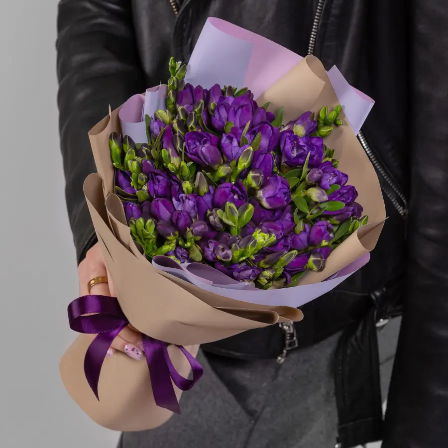 25 Фиолетовых Фрезий в упаковке — купить по цене от 6600 руб. с доставкой в Нижнем Новгороде