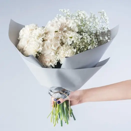 15 Белых Гвоздик и Гипсофила — купить по цене от 4450 руб. с доставкой в Нижнем Новгороде