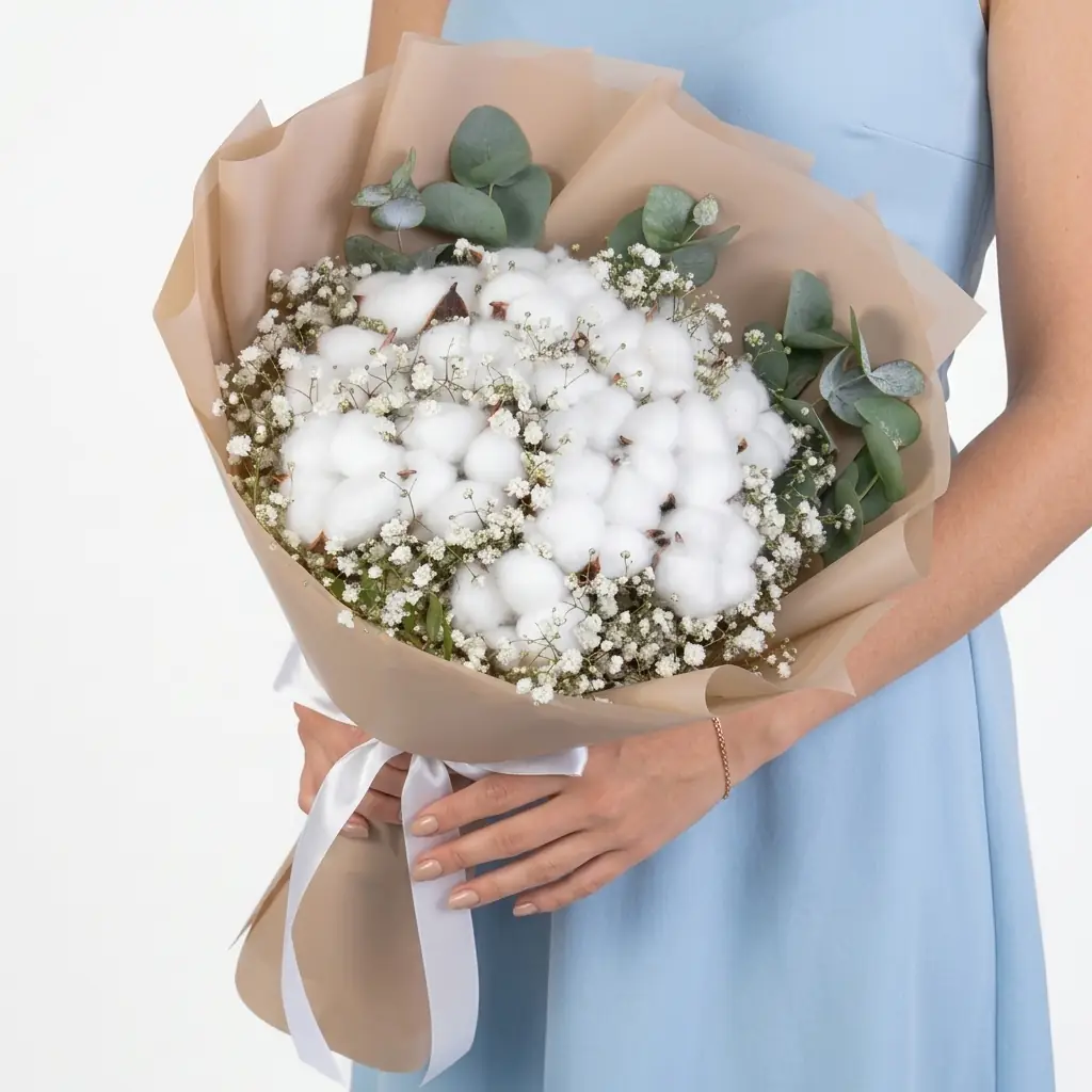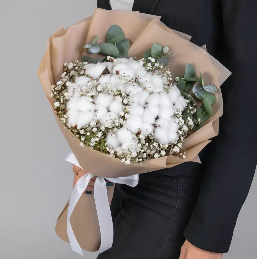 Букет из хлопка и гипсофилы — купить по цене от 3550 руб. с доставкой в Нижнем Новгороде