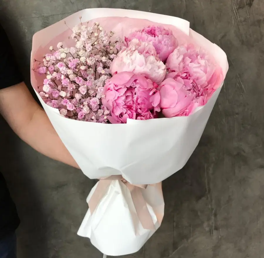 Букет из пионов и гипсофил купить в Нижнем Новгороде | Пионы и гипсофилы букет цена