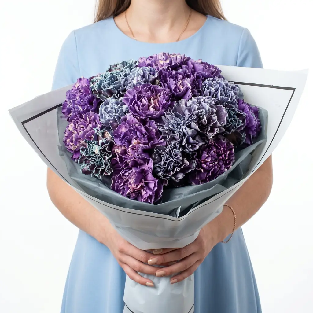21 Серо-Фиолетовая Гвоздика в упаковке — купить по цене от 4230 руб. с доставкой в Нижнем Новгороде