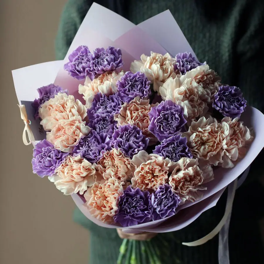 29 Кремово-Сиреневых Гвоздик в упаковке — купить по цене от 4720 руб. с доставкой в Нижнем Новгороде
