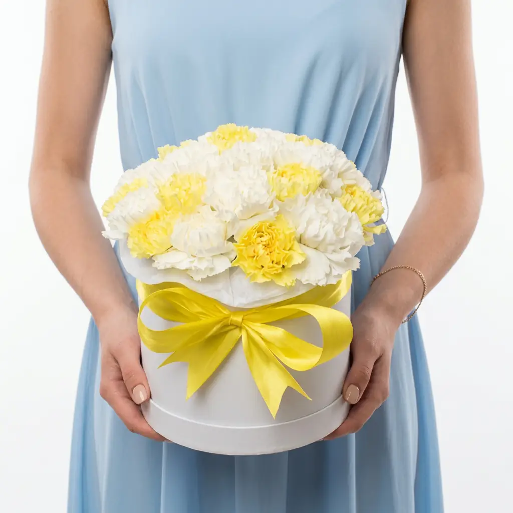 Шляпная коробка с цветными гвоздиками — купить по цене от 4340 руб. с доставкой в Нижнем Новгороде