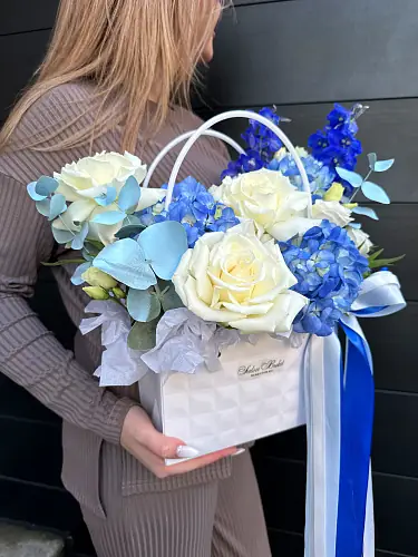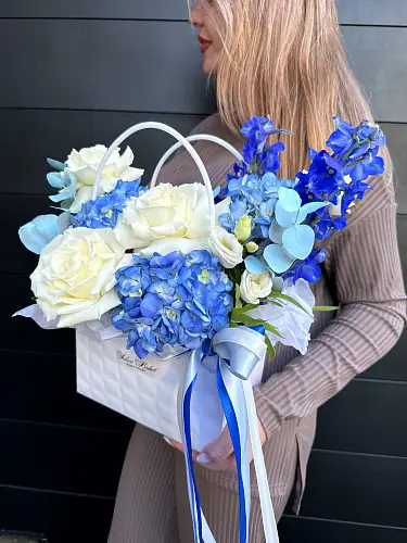 Сумка с Розой и Гортензией — отличный выбор для подарка! На сайте вы найдете красочные фотографии, которые помогут сделать выбор. Цена букета — 4715 руб.. Закажите Сумка с Розой и Гортензией с доставкой в Нижнем Новгороде и по области.