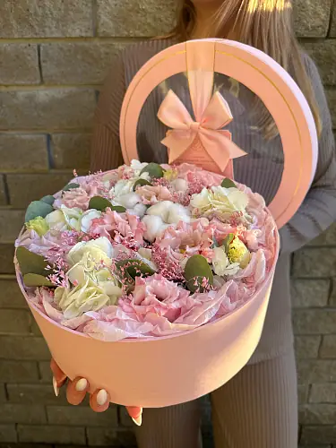 Соберем в день доставки, только из свежих цветов и затем с улыбкой вручим получателю.