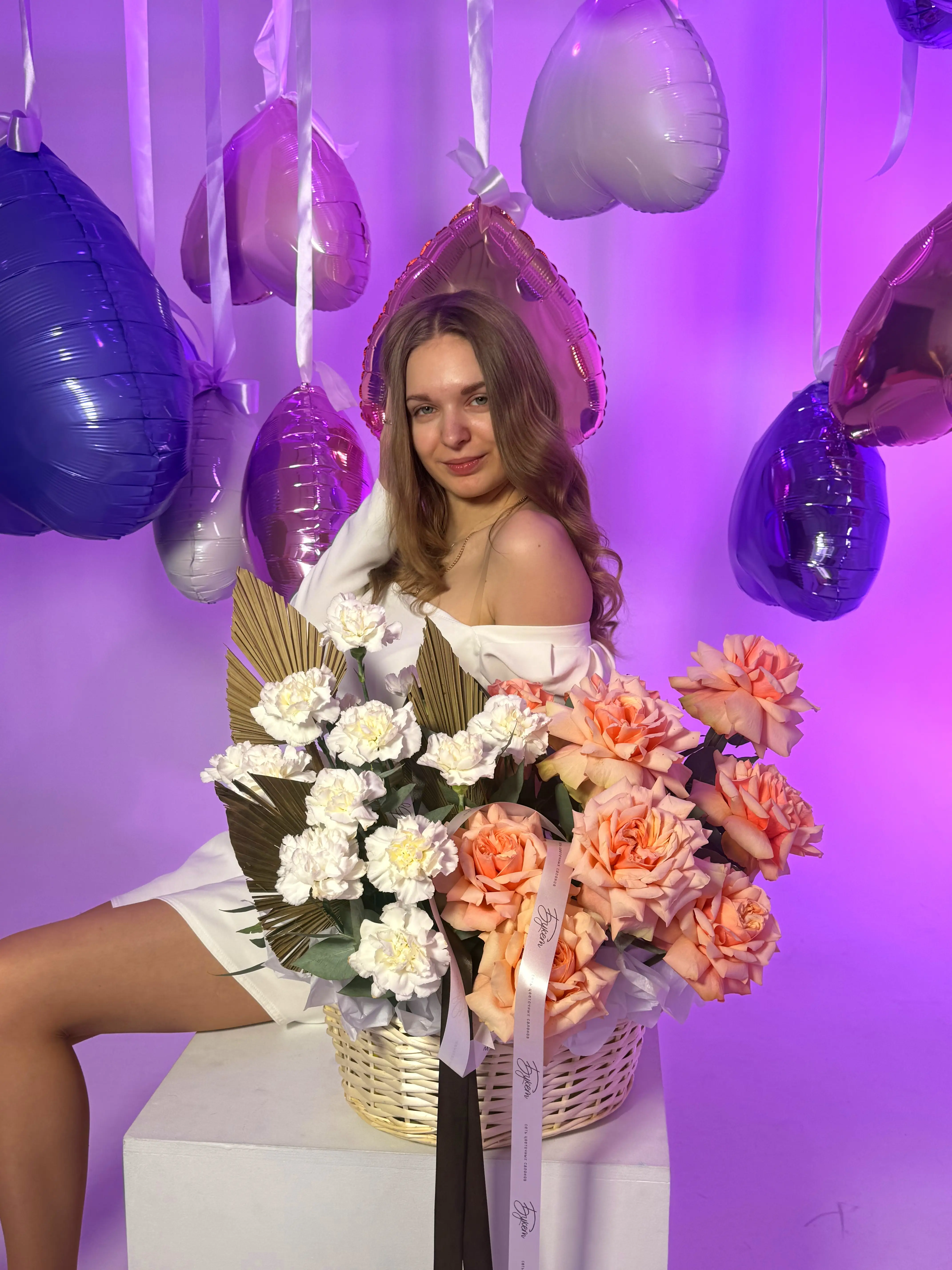 Соберем в день доставки, только из свежих цветов и затем с улыбкой вручим получателю.