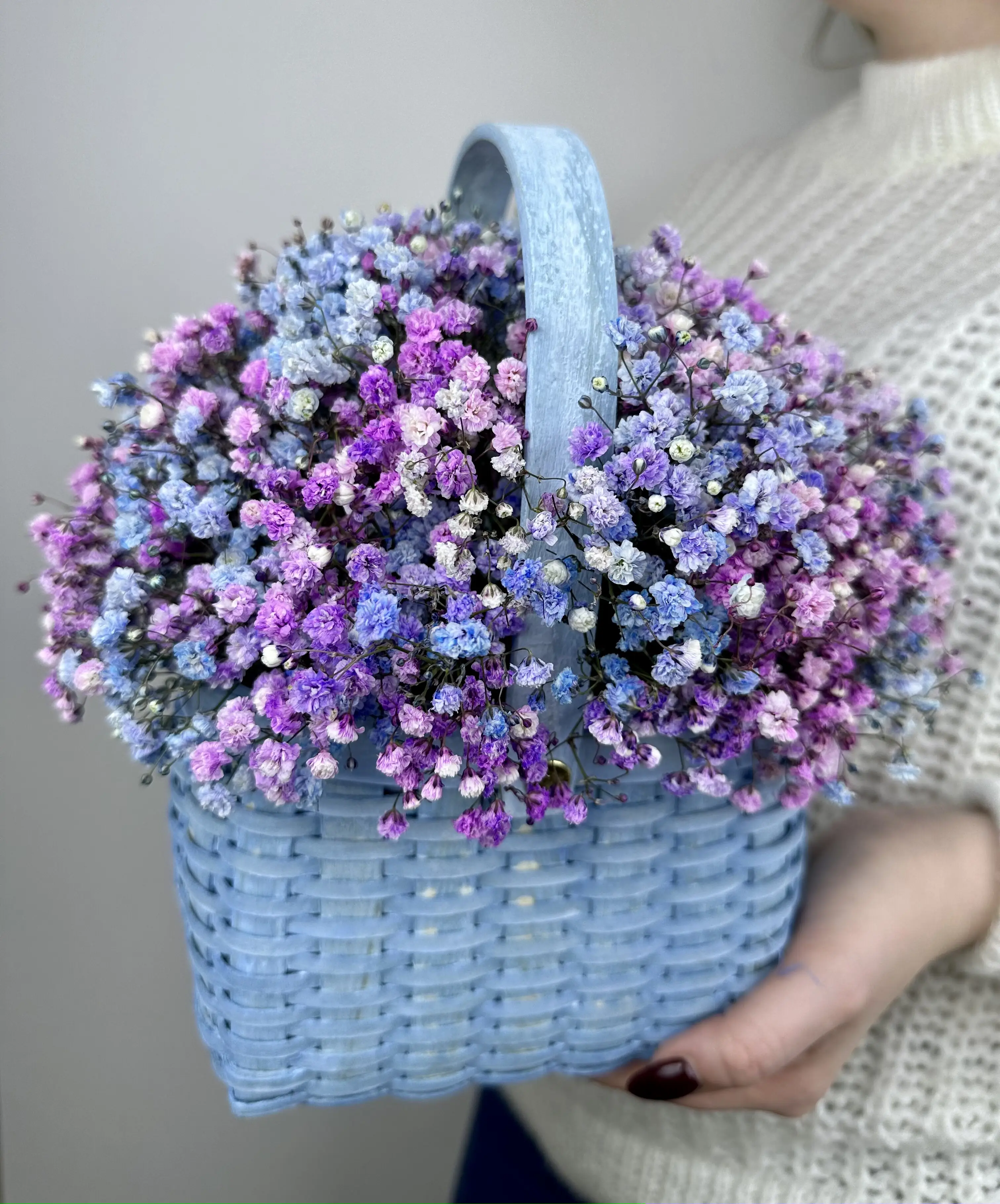 Корзина цветов с пурпурной гипсофилой — купить с доставкой в Нижнем Новгороде
