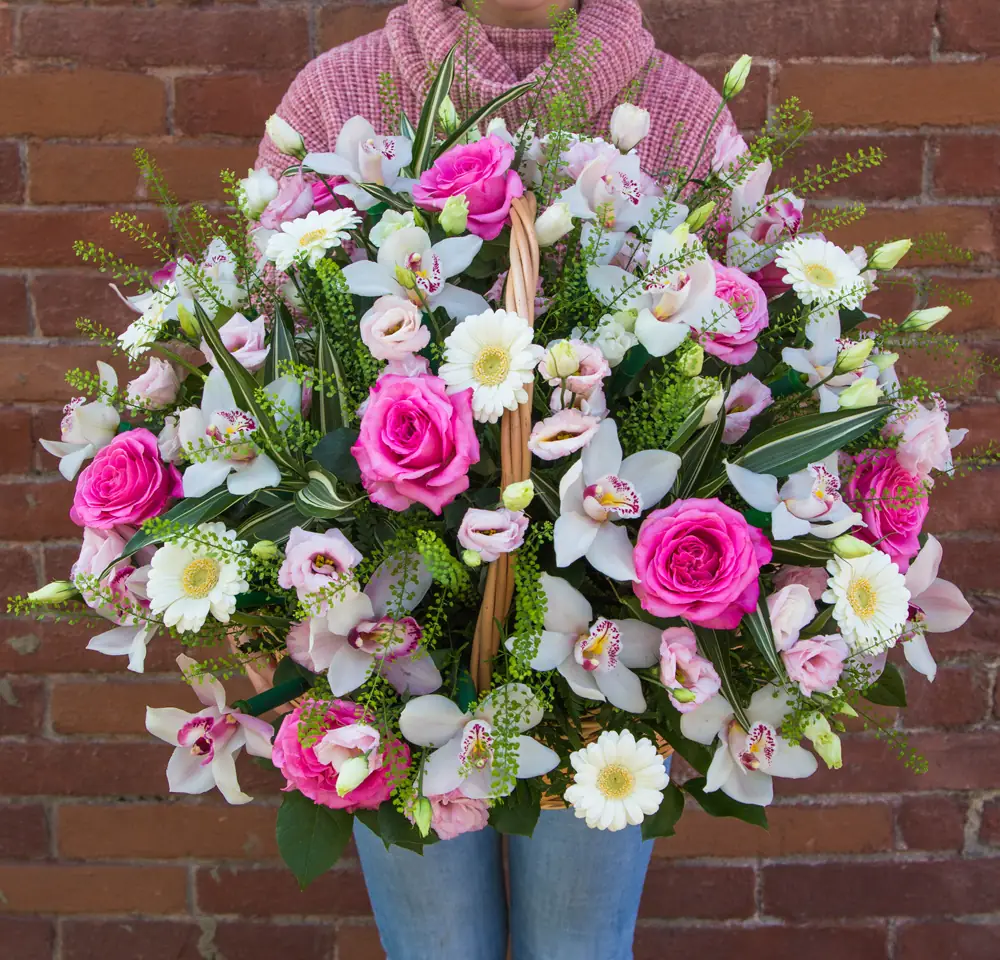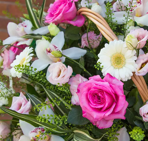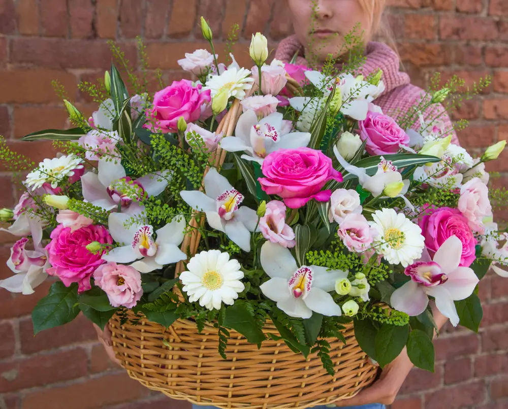 Корзина с розами и орхидеями — купить с доставкой в Нижнем Новгороде
