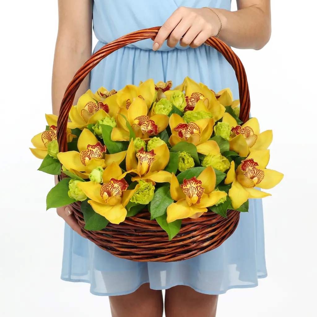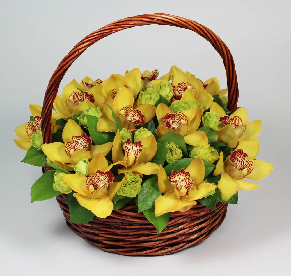 Корзина с желтыми орхидеями