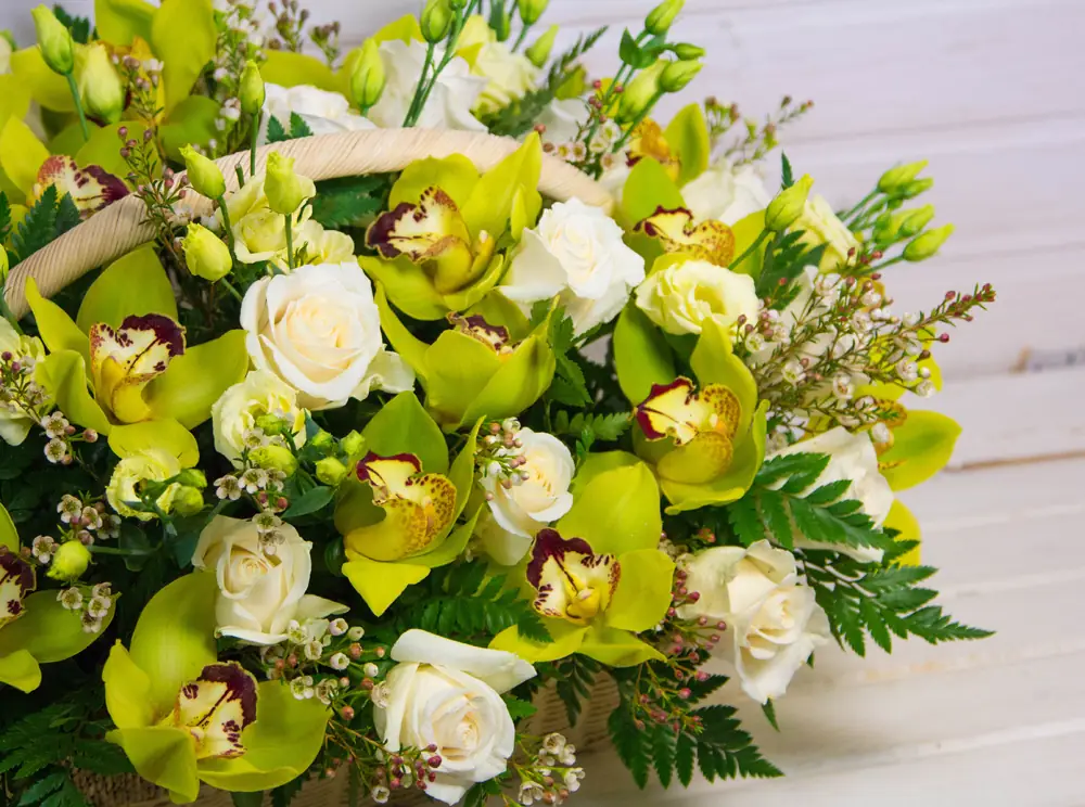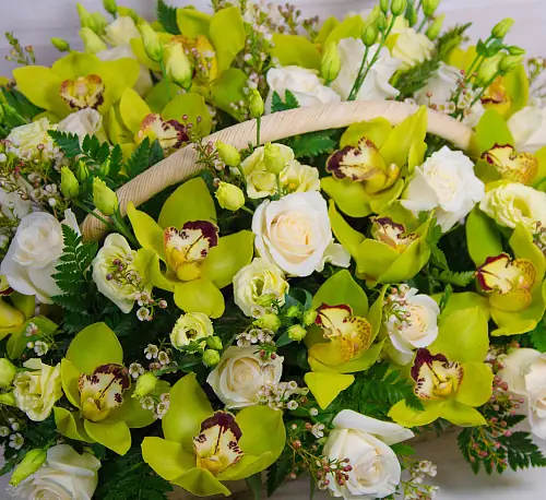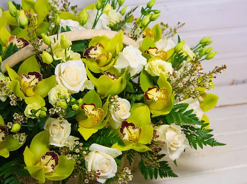 Корзина с орхидеями и розами — купить с доставкой в Нижнем Новгороде