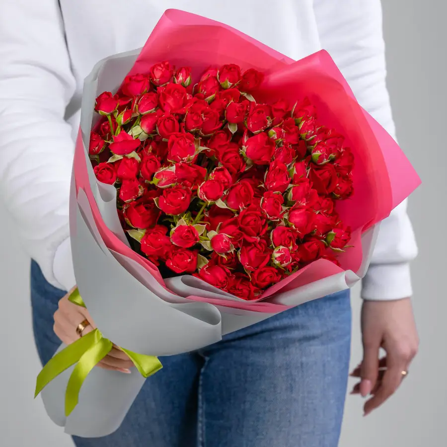 Соберем в день доставки, только из свежих цветов и затем с улыбкой вручим получателю.