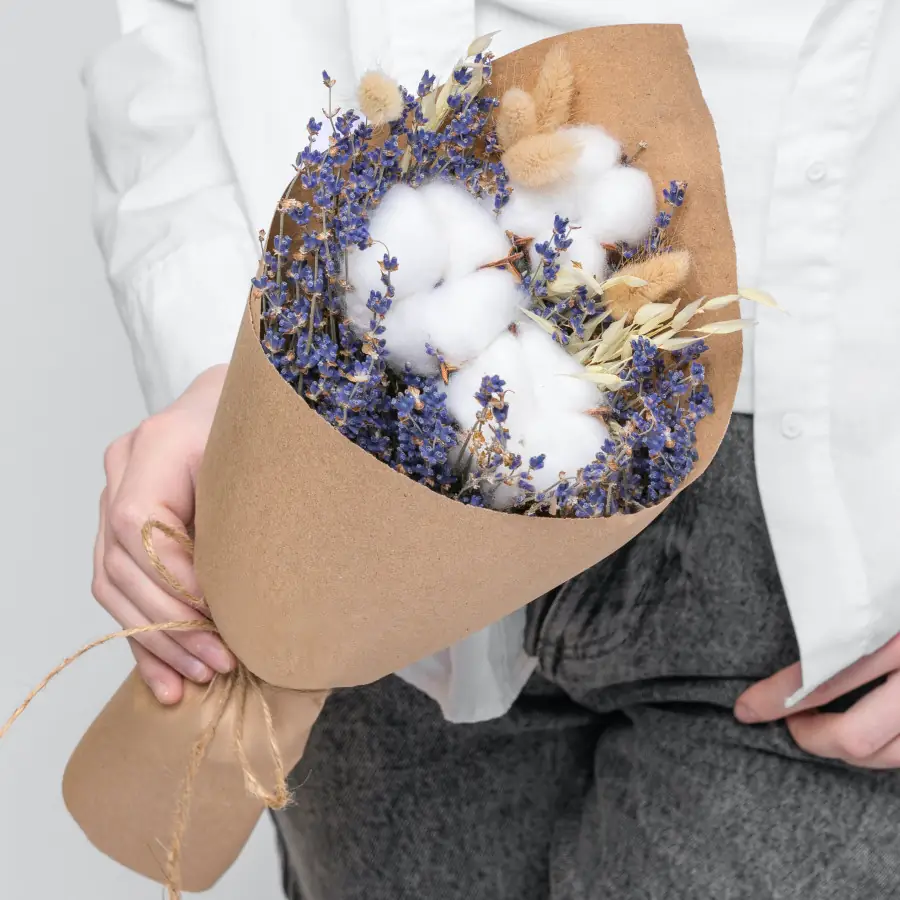 Композиция из хлопка и лаванды — купить по цене от 2040 руб. с доставкой в Нижнем Новгороде