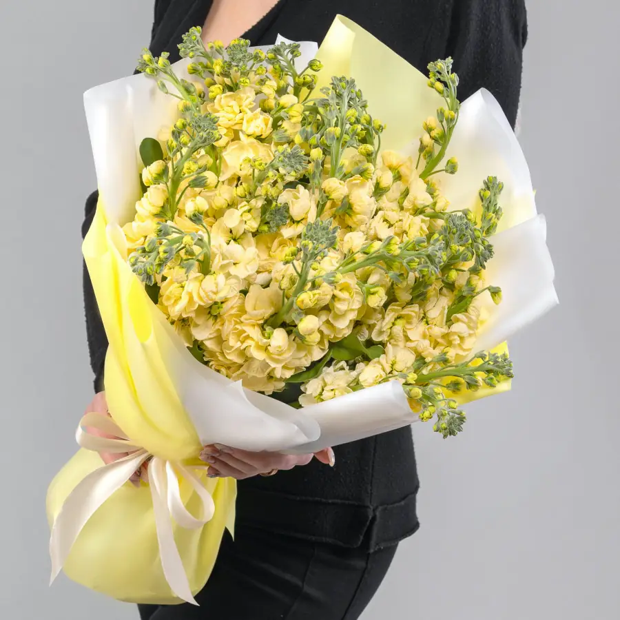 19 Желтых Маттиол в упаковке — отличный выбор для подарка! На сайте вы найдете красочные фотографии, которые помогут сделать выбор. Цена букета — 5470 руб.. Закажите 19 Желтых Маттиол в упаковке с доставкой в Нижнем Новгороде и по области.