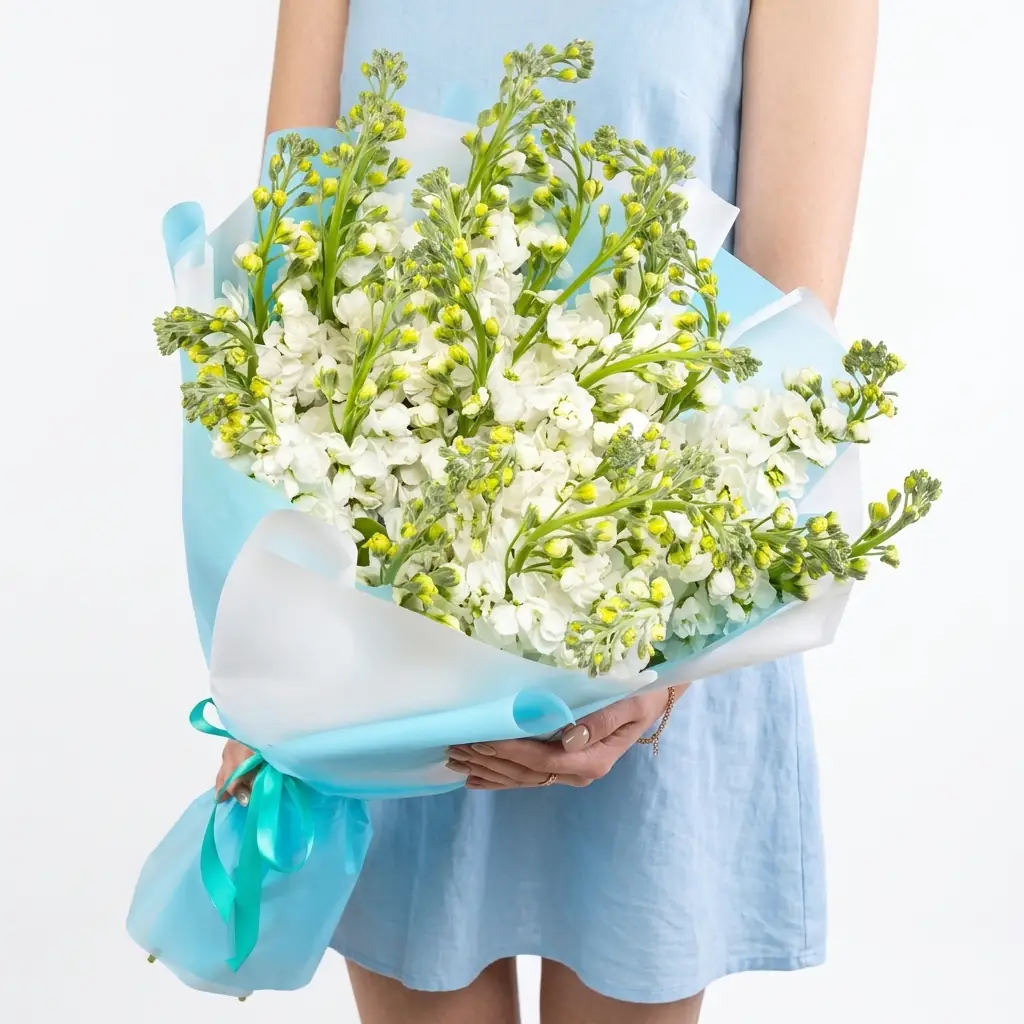 25 Белых Маттиол в упаковке — отличный выбор для подарка! На сайте вы найдете красочные фотографии, которые помогут сделать выбор. Цена букета — 8500 руб.. Закажите 25 Белых Маттиол в упаковке с доставкой в Нижнем Новгороде и по области.