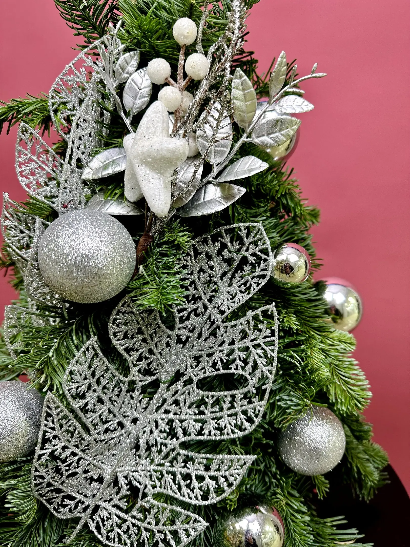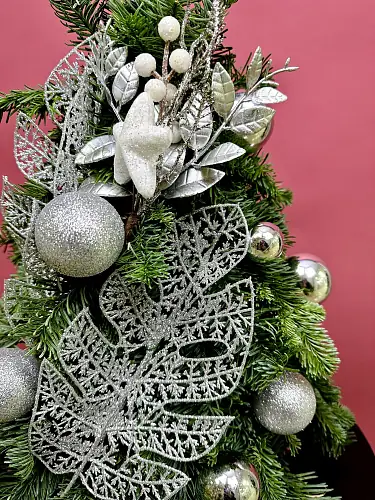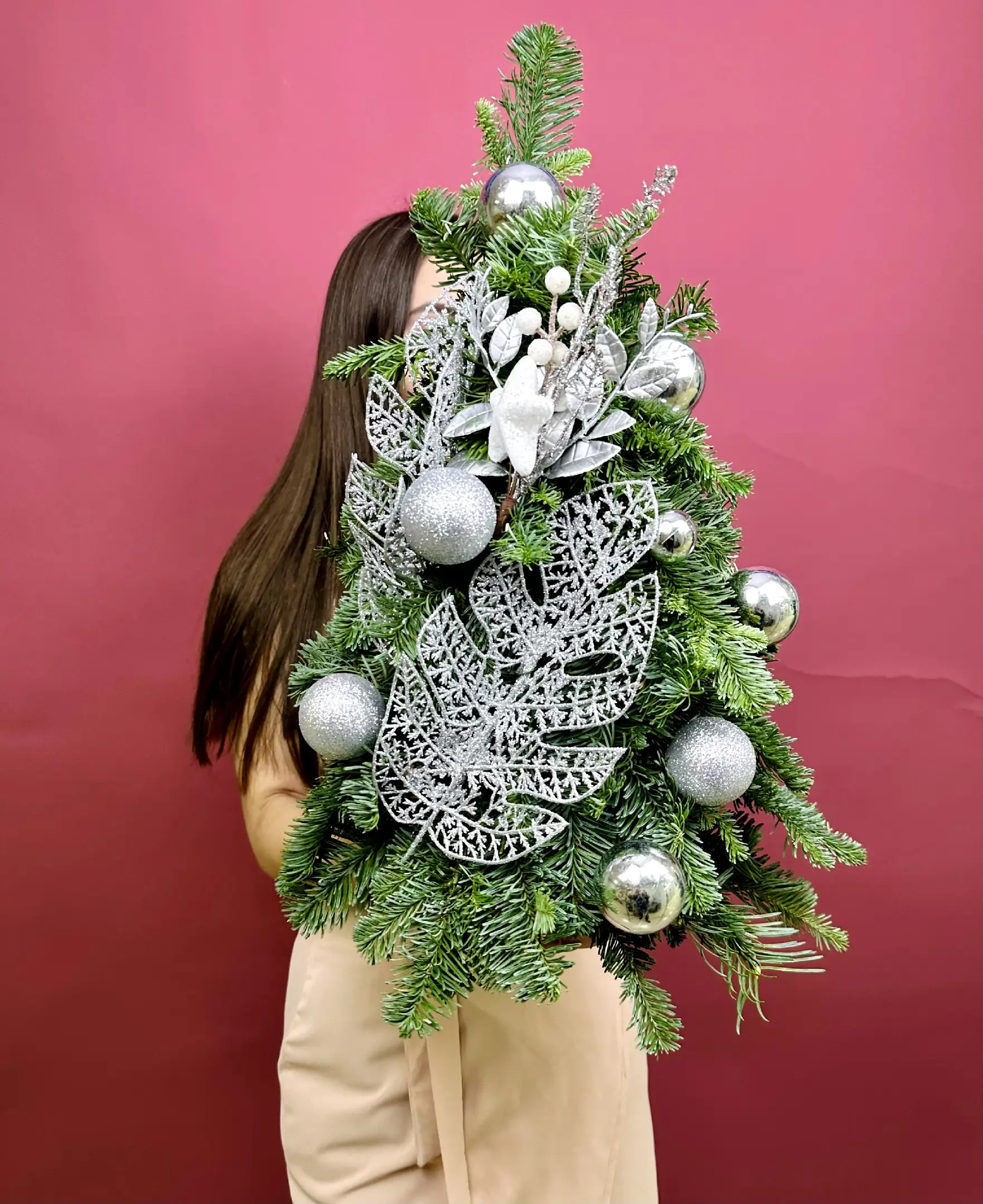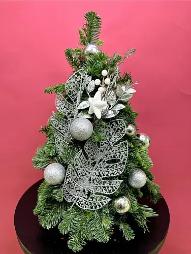 Декоративная елка с серебром — отличный выбор для подарка! На сайте вы найдете красочные фотографии, которые помогут сделать выбор. Цена букета — 4020 руб.. Закажите Декоративная елка с серебром с доставкой в Нижнем Новгороде и по области.