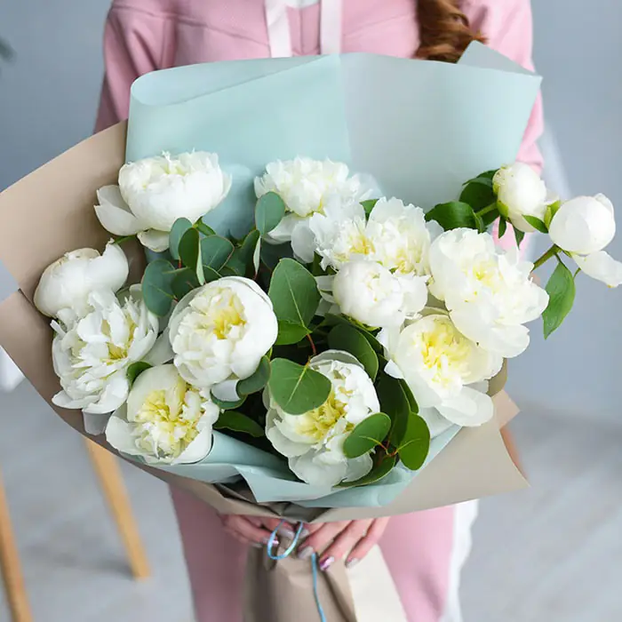 13 Белых Пионов в упаковке — купить по цене от 11880 руб. с доставкой в Нижнем Новгороде