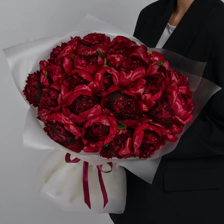 Яркий Букет из 25 Красных Пионов — купить по цене от 21250 руб. с доставкой в Нижнем Новгороде
