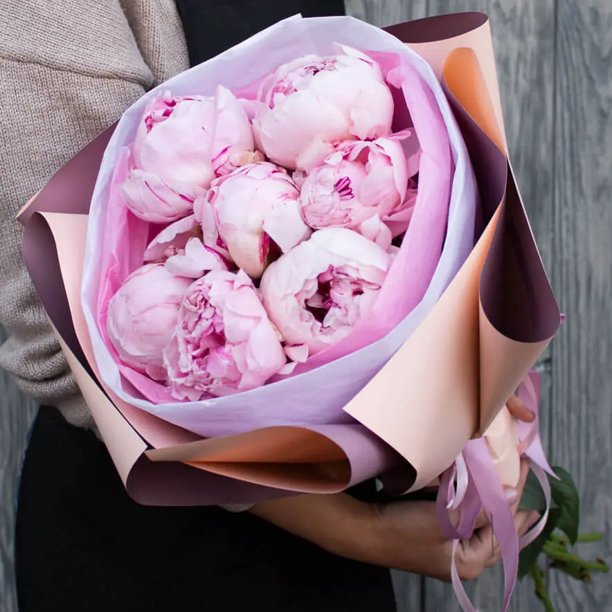 7 Пионов Сара Бернар в упаковке — купить по цене от 6870 руб. с доставкой в Нижнем Новгороде