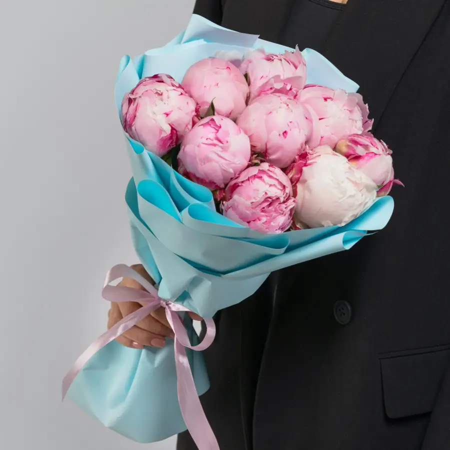 9 Пионов Сара Бернар в упаковке — купить по цене от 5240 руб. с доставкой в Нижнем Новгороде