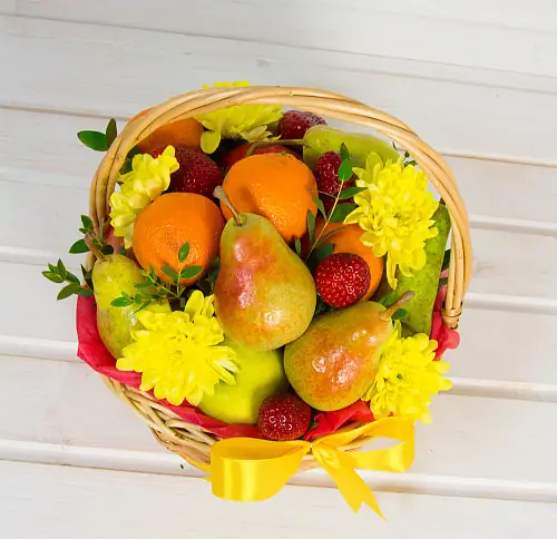 Побалуйте себя или близкого Вам человека фруктовой корзиной с цветочным оформлением.