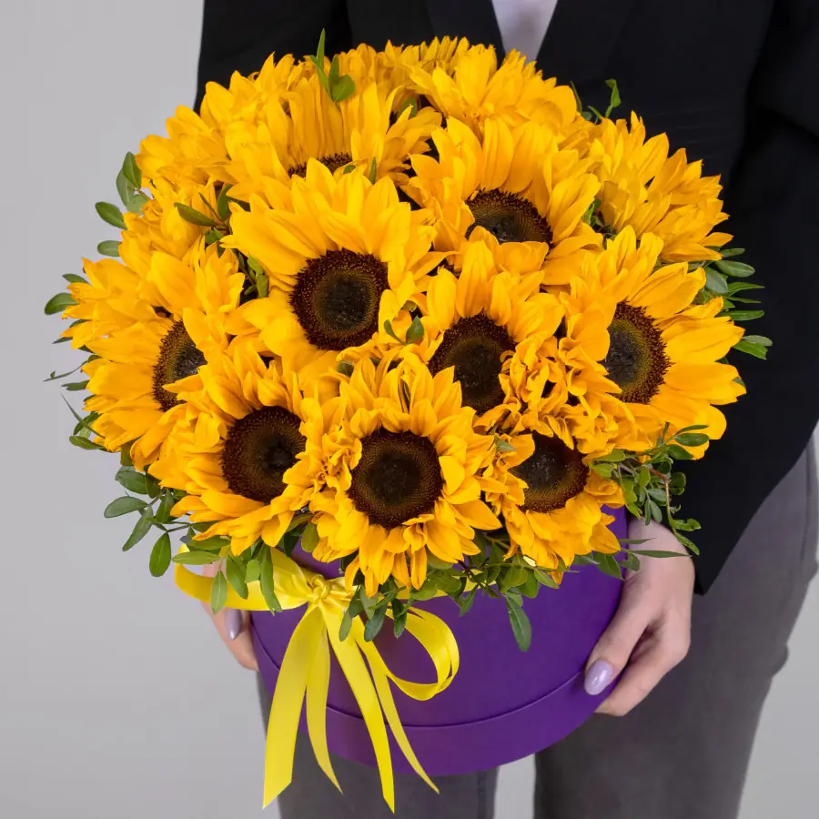 15 Подсолнухов в коробке — отличный выбор для подарка! На сайте вы найдете красочные фотографии, которые помогут сделать выбор. Цена букета — 6375 руб.. Закажите 15 Подсолнухов в коробке с доставкой в Нижнем Новгороде и по области.