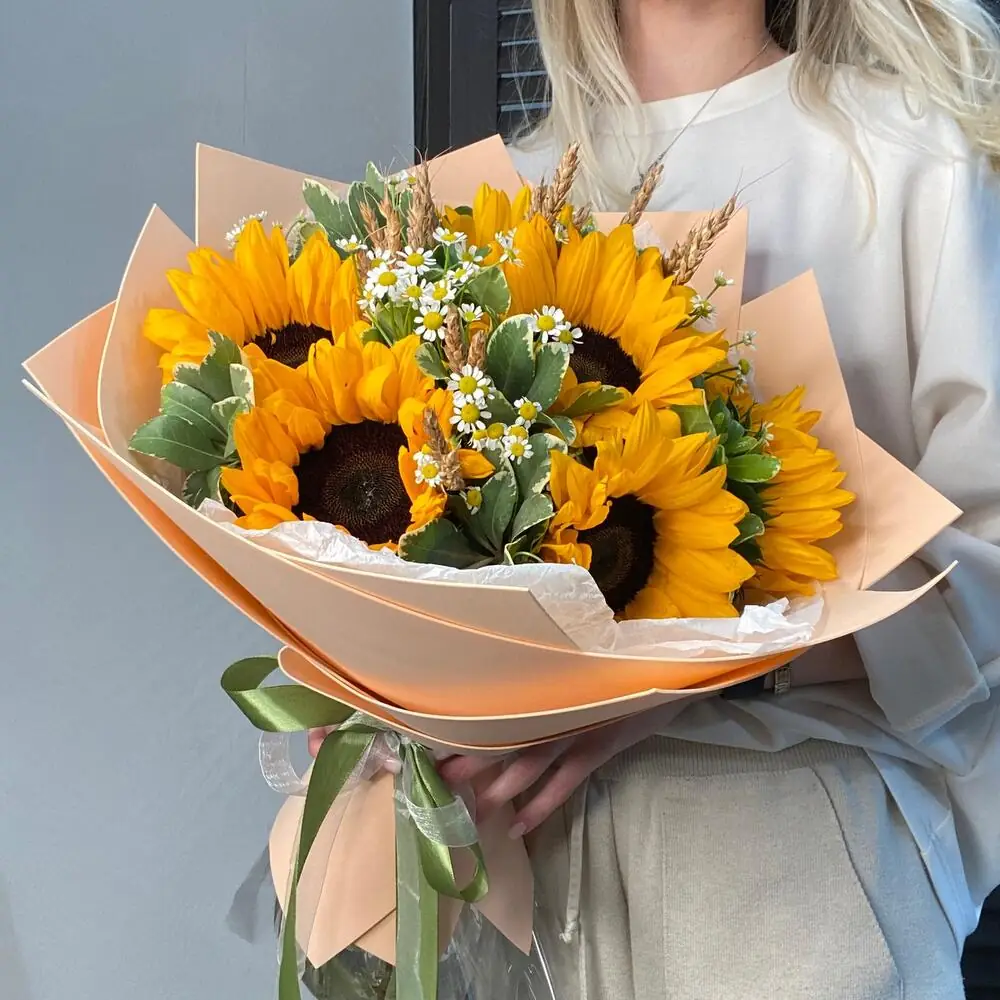 Букет подсолнухов с ромашками — купить по цене от 4920 руб. с доставкой в Нижнем Новгороде