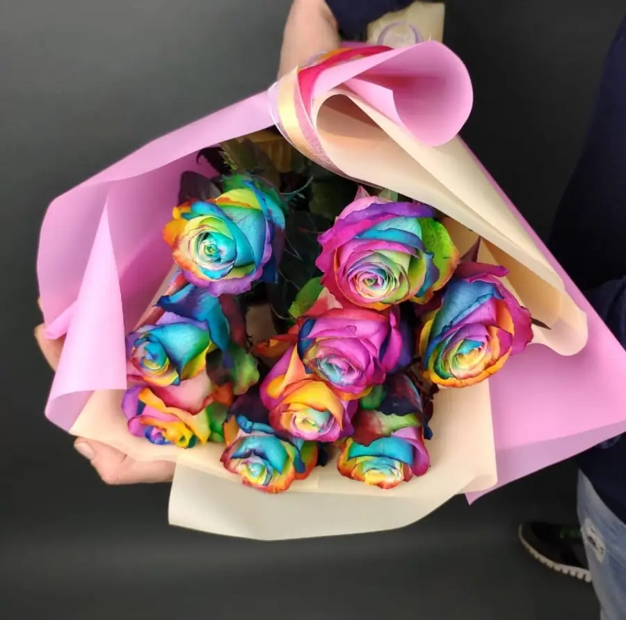 9 Радужных Роз в дизайнерской упаковке — купить по цене от 4700 руб. с доставкой в Нижнем Новгороде