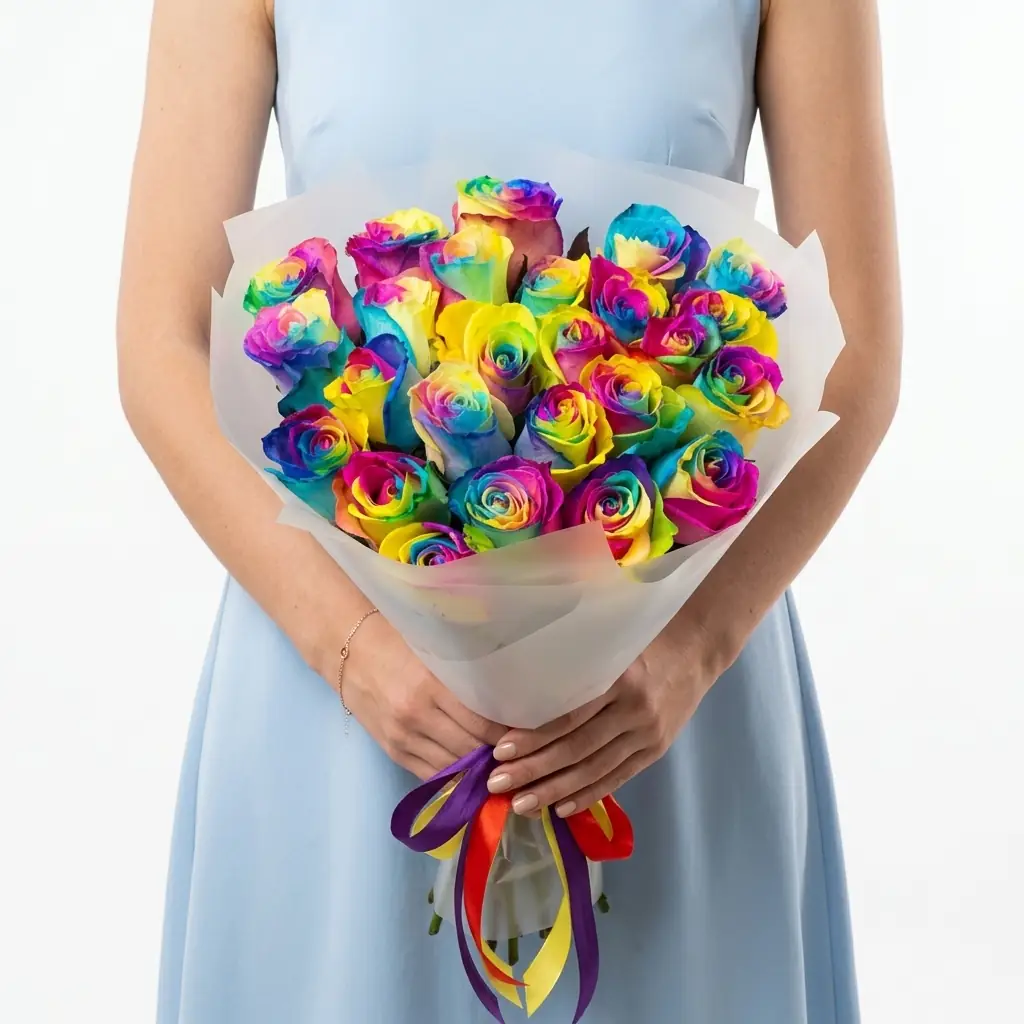 25 радужных роз в упаковке — купить по цене от 11700 руб. с доставкой в Нижнем Новгороде