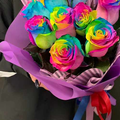 9 радужных роз в упаковке — купить по цене от 4850 руб. с доставкой в Нижнем Новгороде