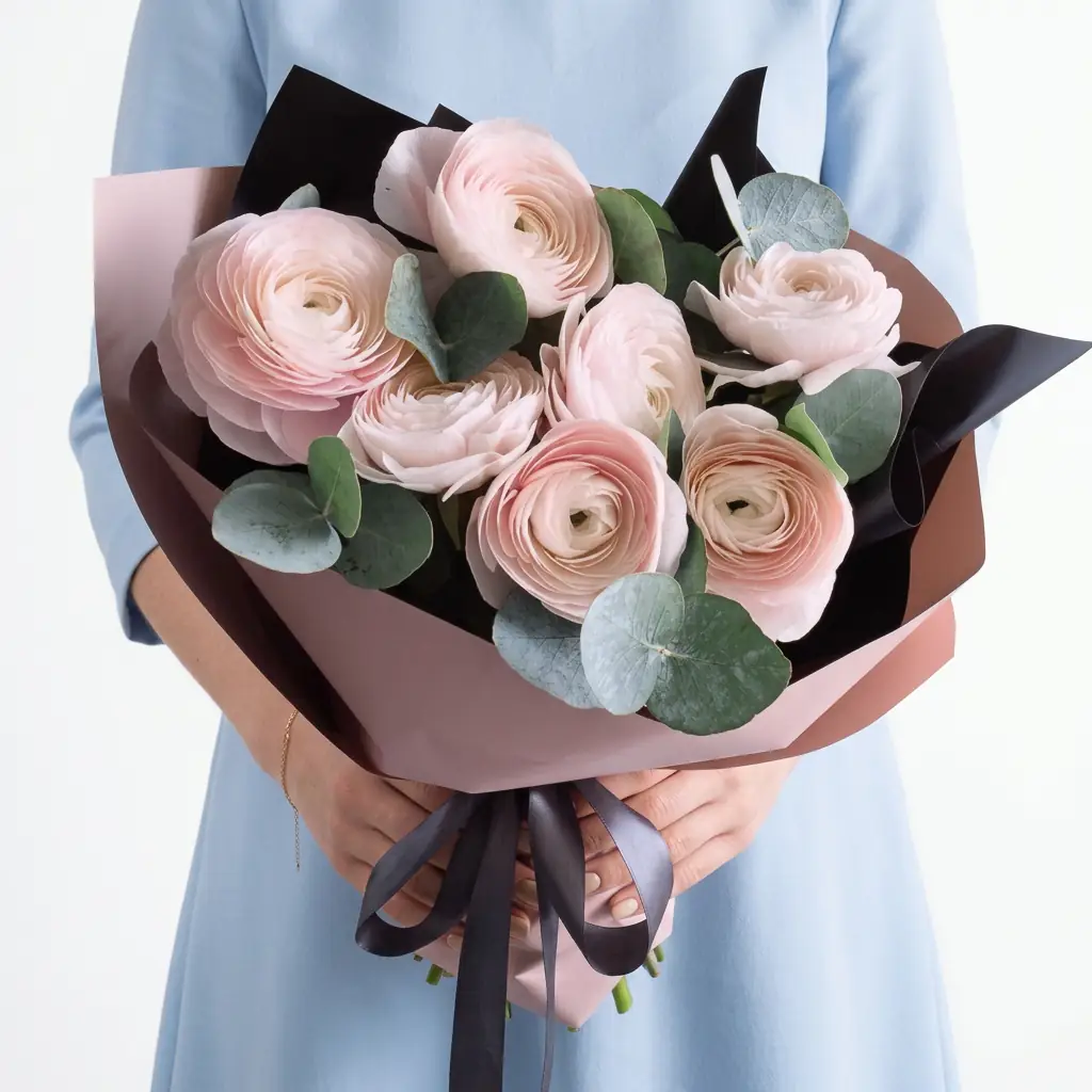 7 Нежных Розовых Ранункулюсов